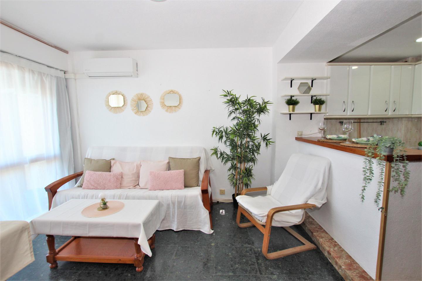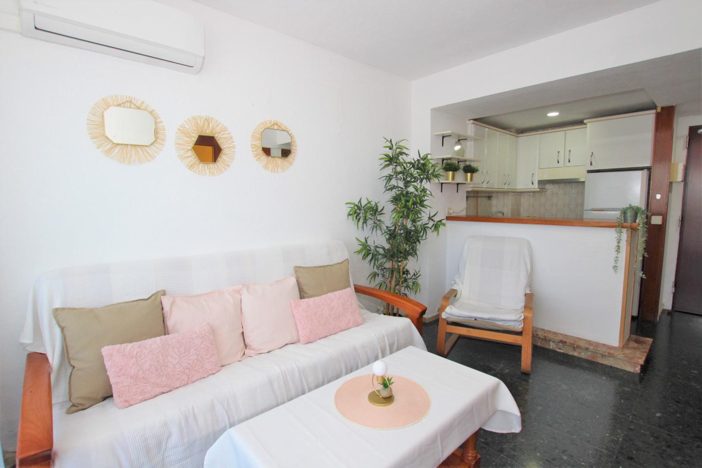 A TAN SOLO 30 METROS PLAYA!! Precioso apartamento a tan solo 30 metros de la playa, planta alta, 45 m2, muy luminoso, con espectaculares vistas al mar, cocina americana, salon comedor, terraza, amplio dormitorio con armario empotrado. Aire acondicionado.
