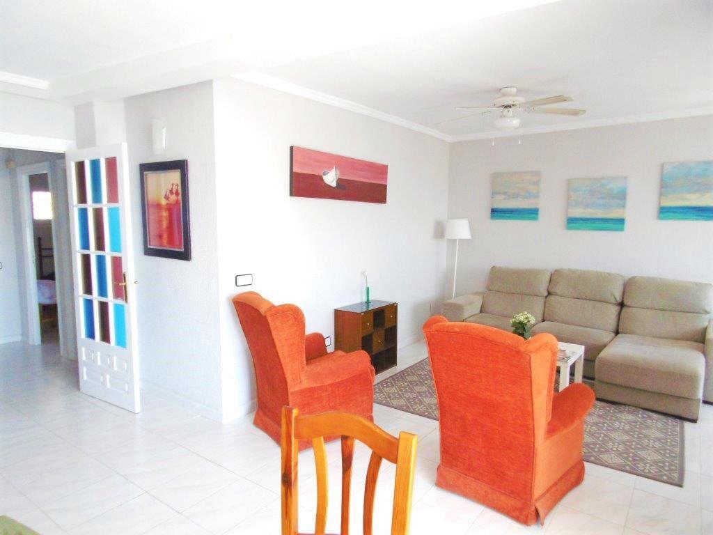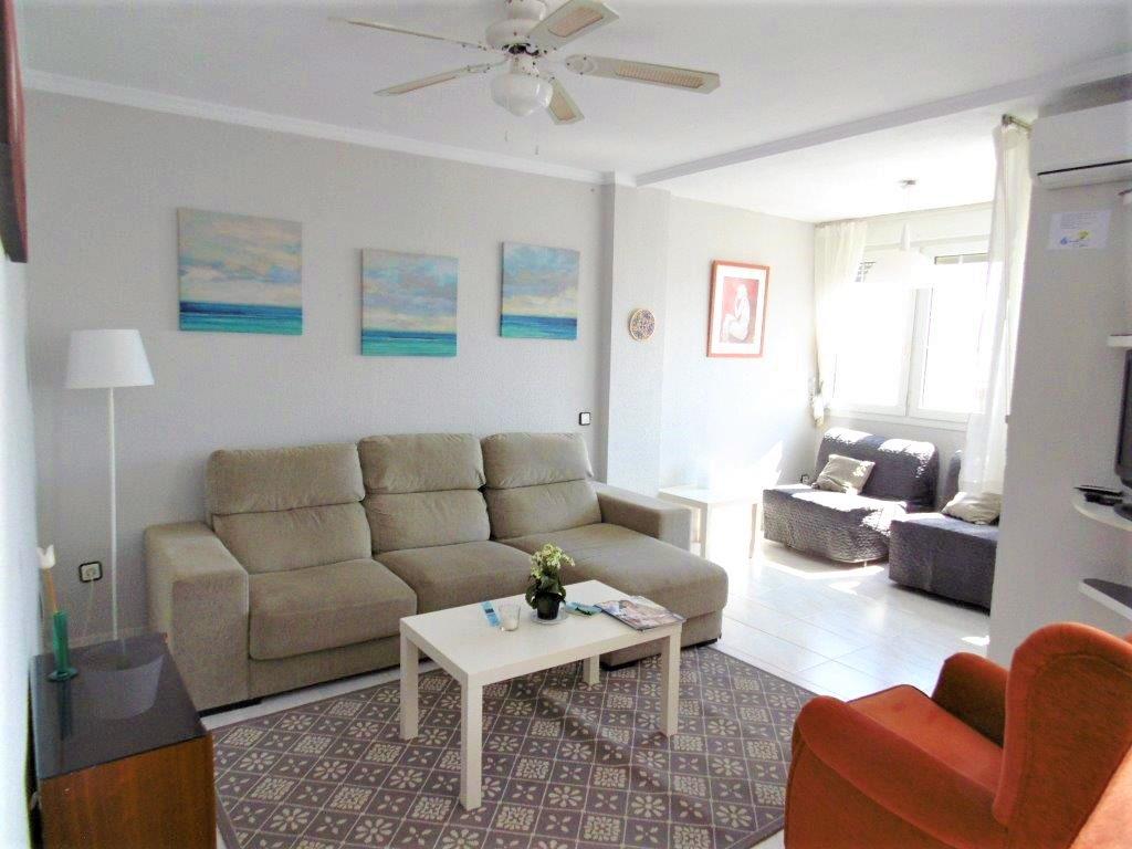 FRONTAL AL MAR!! Precioso piso reformado a tan solo 200 metros de la playa. 80 m2. Consta de cocina independiente, salon comedor, 3 dormitorios de origen ( ACTUALMENTE CONVERTIDO A 2 DORMITORIOS), 2 baños completos, amplio salon comedor, terraza con espectaculares vistas al mar, orientacion sur. Urbanizacion privada que cuenta con piscinas, jardines y parking privado comunitario. Aire acondicionado en todas las estancias, licencia para poder efectuar alquiler turístico. ¡¡ Al lado de todos los servicios!!