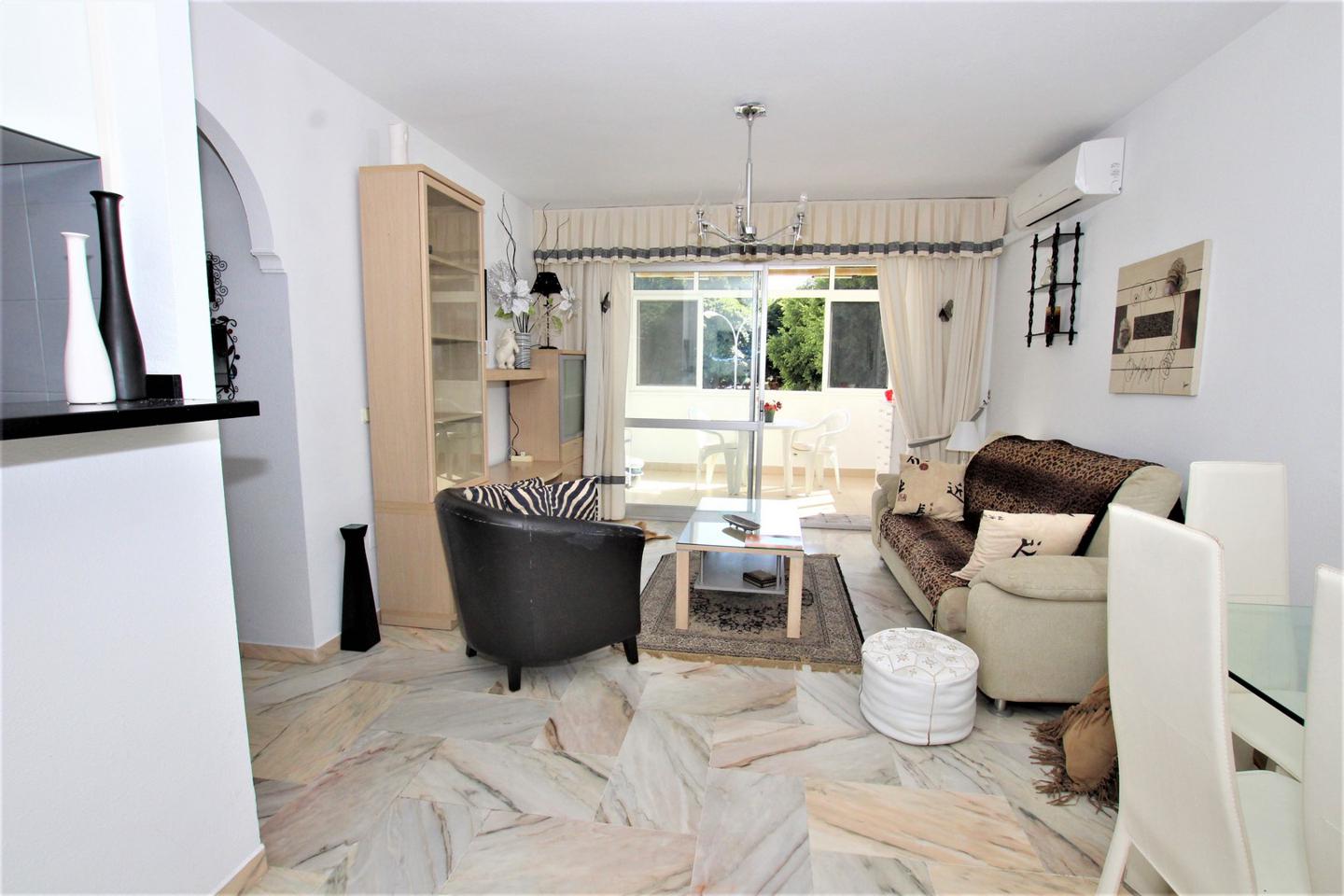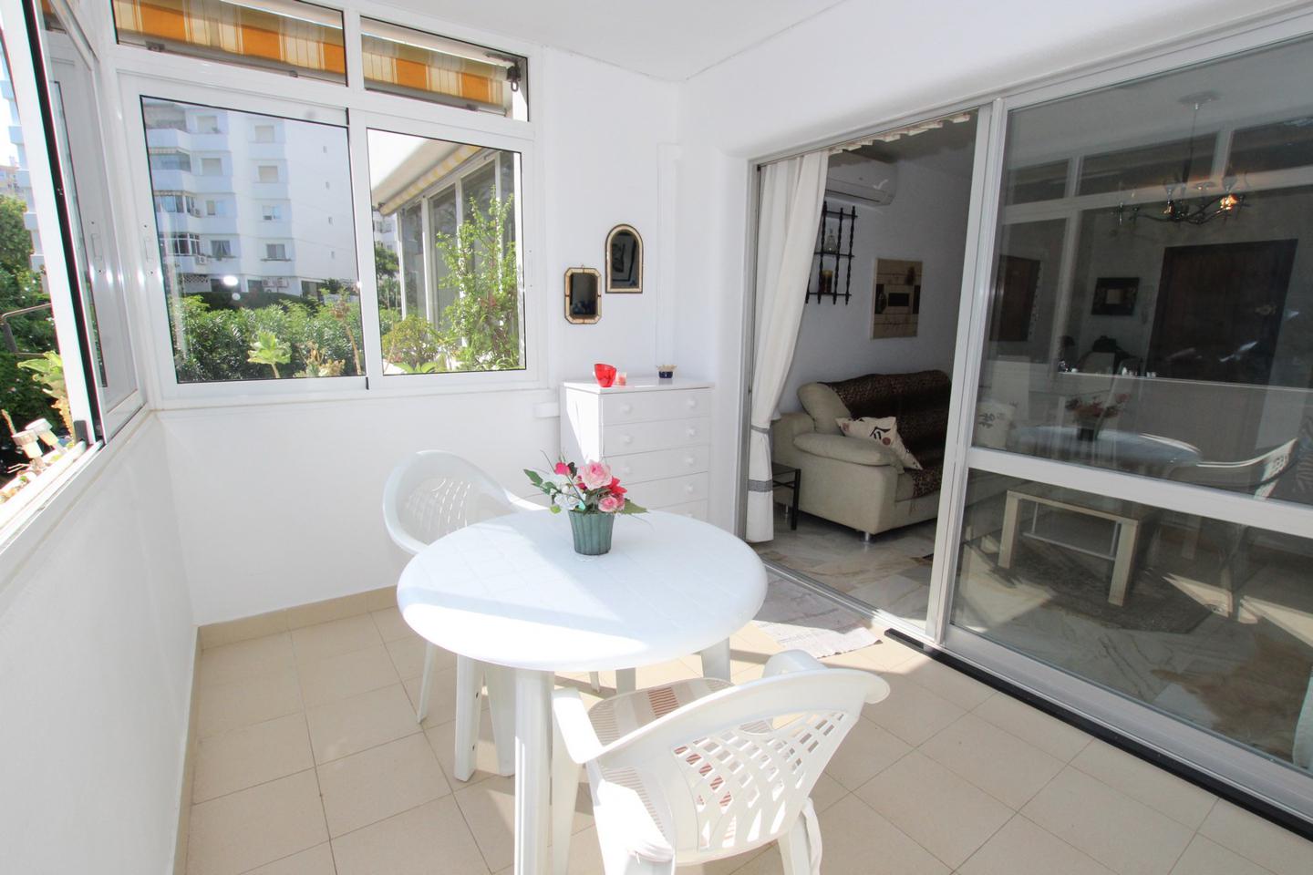 LARGA TEMPORADA Piso situado en Arroyo de la Miel, La vivienda consta de 2 dormitorios con armarios empotrados, 1 baño, salon comedor, cocina americana con horno, microhondas, amplia terraza acristalada, orientacion oeste, muy luminoso, urbanizacion muy tranquila que cuenta con piscina, jardines y parking privado comunitario, con todos los servicios cercanos como supermercado, bus, taxi....