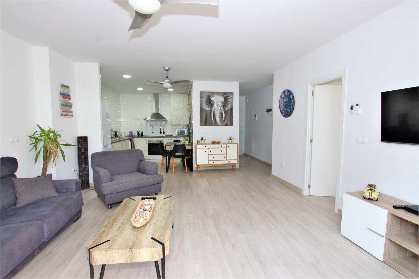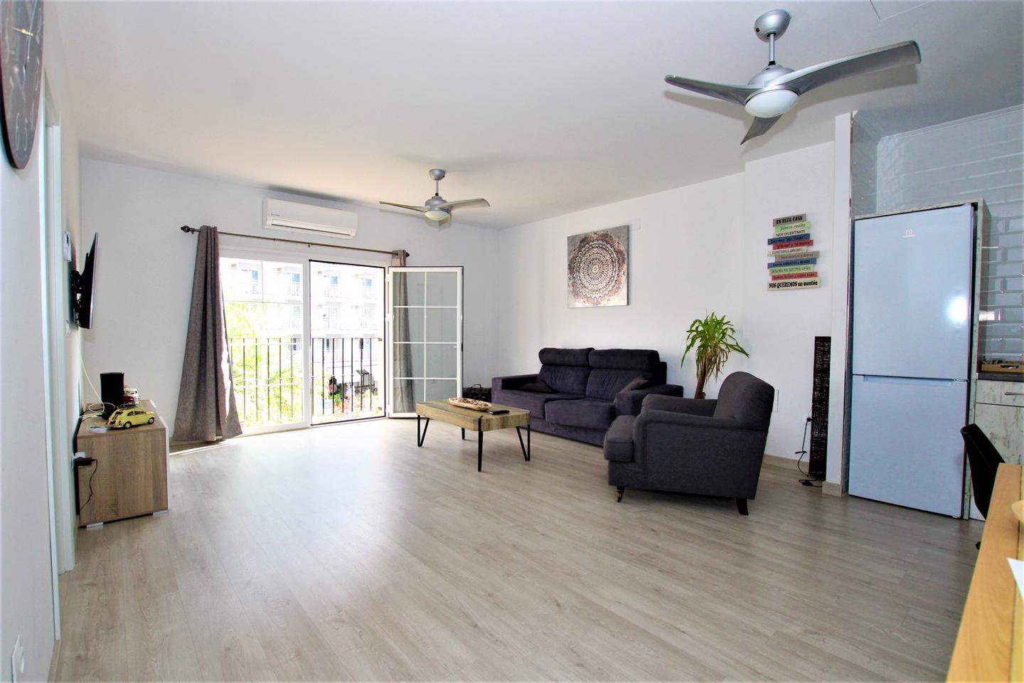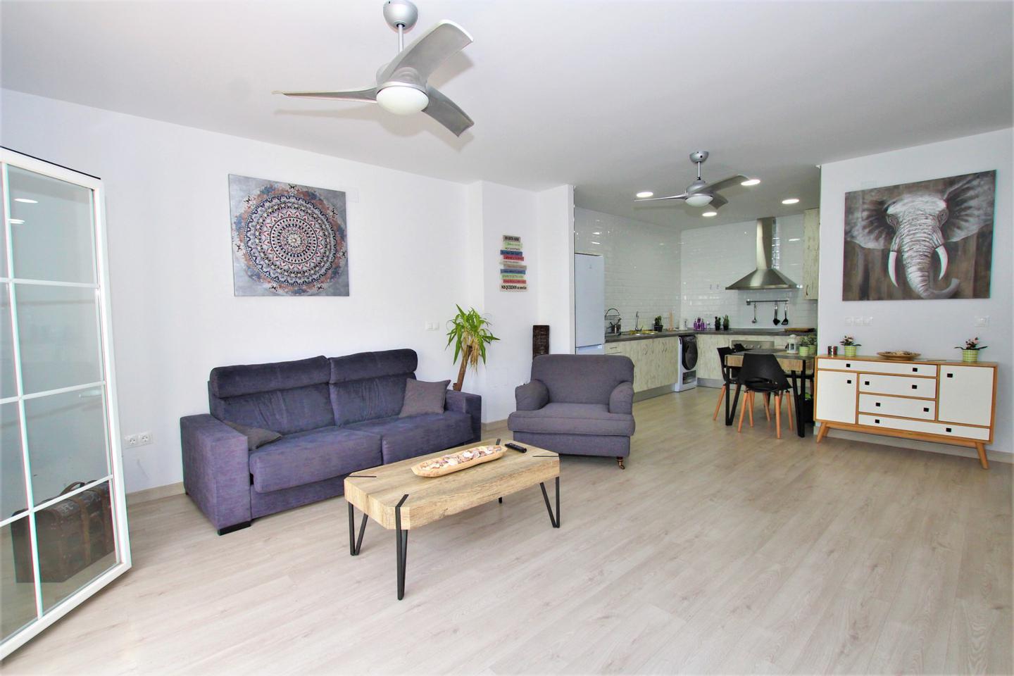 A 50 metros playa!!! LARGA TEMPORADA Precioso y amplio piso totalmente refomado,amueblado y equipado. Consta de 1 dormitorio con armario empotrado y baño en suite, amplio salon comedor con sofa cama, cocina americanacon horno, microhoondas, lavadora-secadora, otro baño completo, balcon, aire acondicionado, con wifi incluido en el precio, piscina comunitaria. (Garaje opcional)