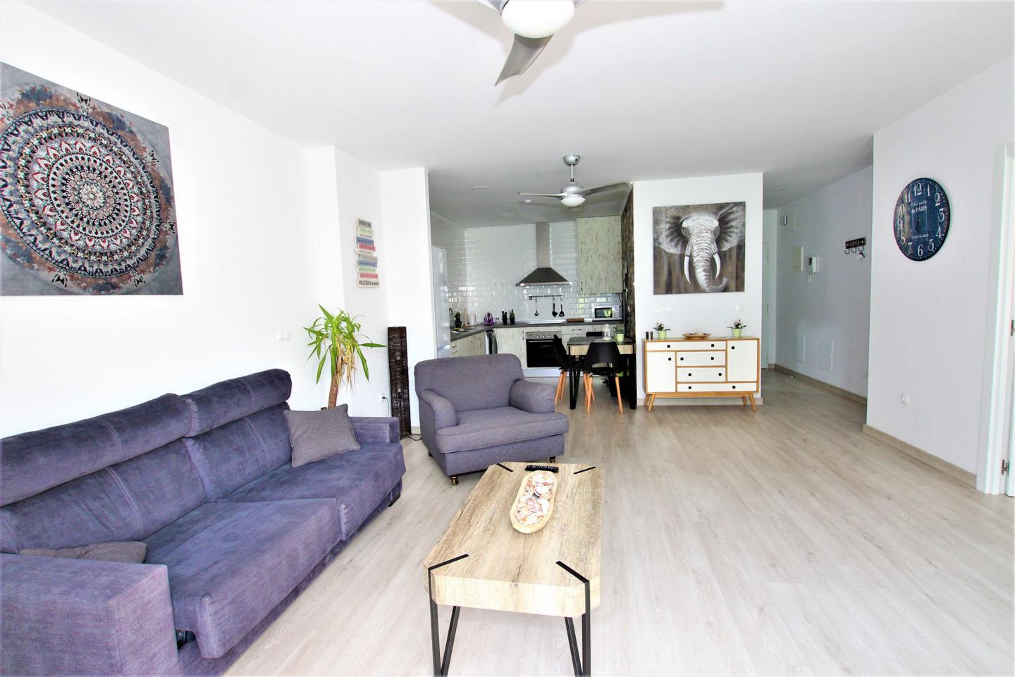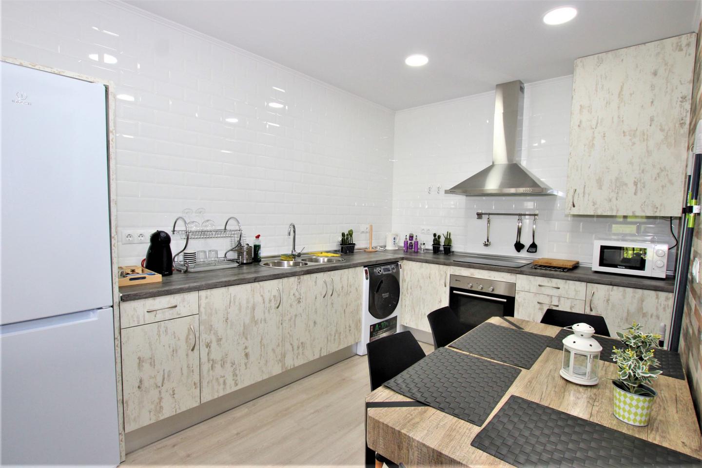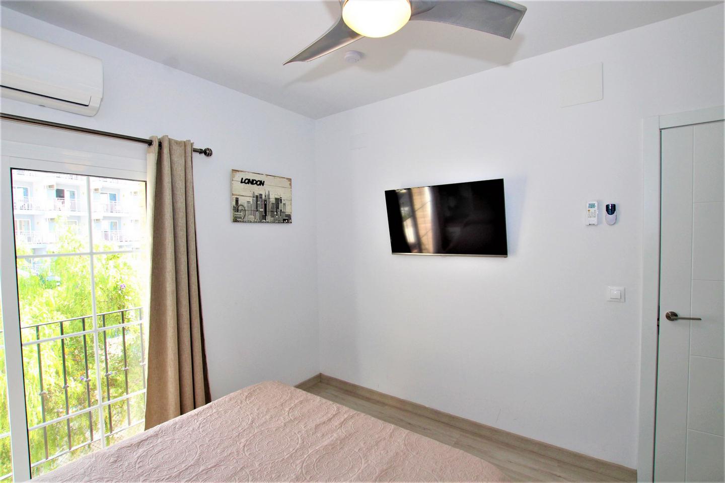 A 50 metros playa!!! LARGA TEMPORADA Precioso y amplio piso totalmente refomado,amueblado y equipado. Consta de 1 dormitorio con armario empotrado y baño en suite, amplio salon comedor con sofa cama, cocina americanacon horno, microhoondas, lavadora-secadora, otro baño completo, balcon, aire acondicionado, con wifi incluido en el precio, piscina comunitaria. (Garaje opcional)