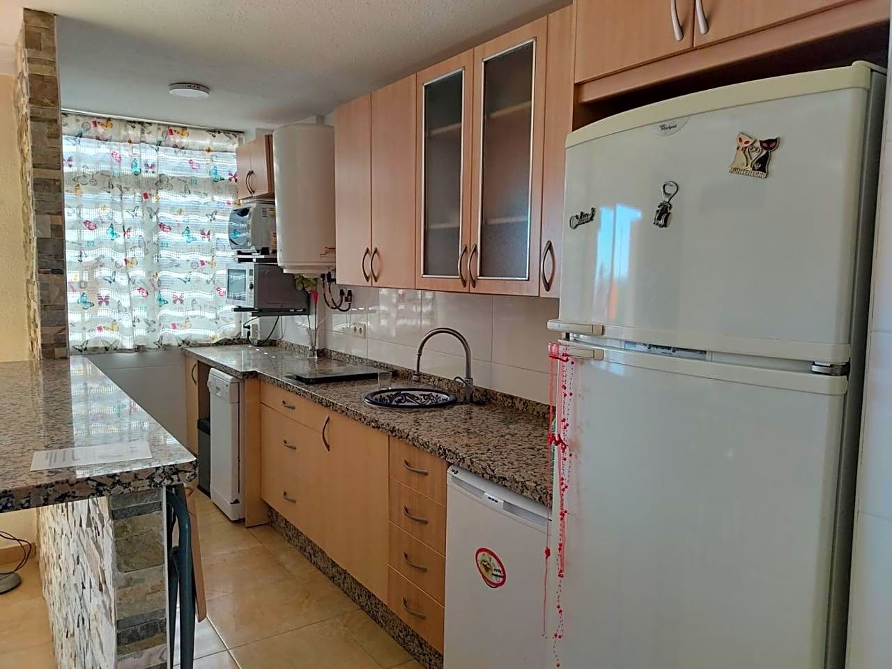 La vivienda que se encuentra totalmente reformada, se distribuye en 2 dormitorios con armarios empotrados, un baño completo con una amplia ducha, un aseo, una cocina abierta al salón-comedor, y una terraza con vistas frontales al mar.