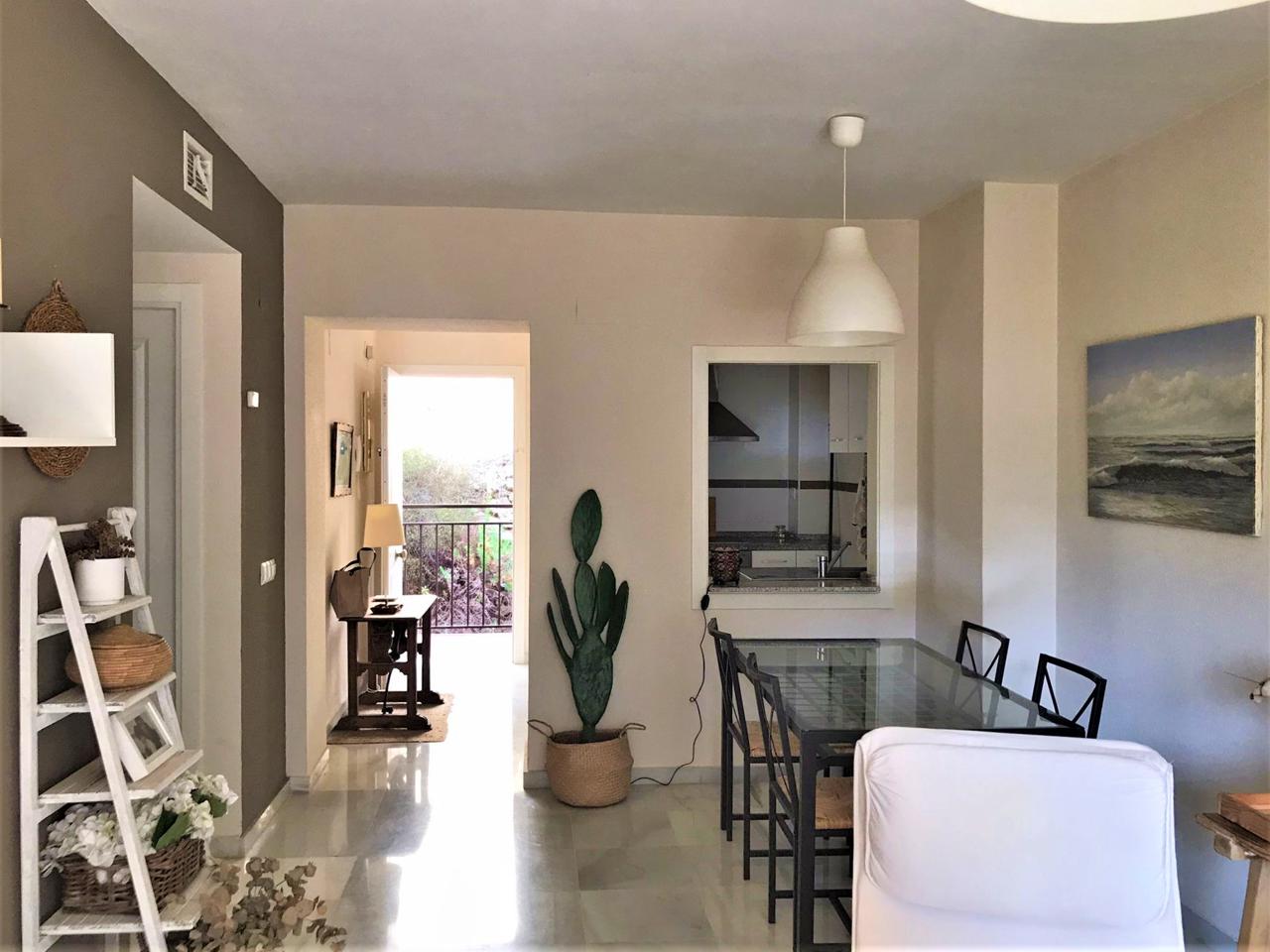 Precioso apartamento situado en residencial tranquilo, con preciosas zonas comunes de piscinas, jardines, chirinquito y ascensor para bajar a la playa.