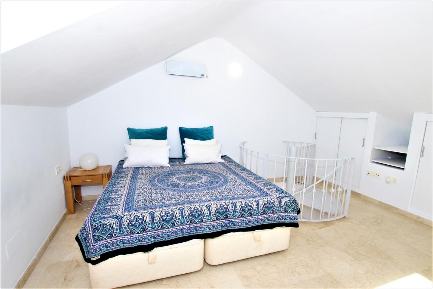 ATICO DUPLEX LA VIÑUELA!! Precioso ático dúplex en zona Viñuela, 75m2. Consta de cocina americana, salon comedor con salida a la terraza principal, 1 dormitorio y 1 baño, en la planta superior se encuentra el dormitoiro principal muy amplio con armarios empotrados y terraza, tiene aire acondicionado frio/calor, ventanas climalit, lavabos de vidrio templado, bonitas vistas vistas a mar y montaña.Plaza de parking doble incluida en el precio. urbanizacion privada que cuenta con piscina, jardines y pista de pádel. Maginifica zona muy tranquila, facil y rapido acceso a la autovia, cerca de todos los sericios....