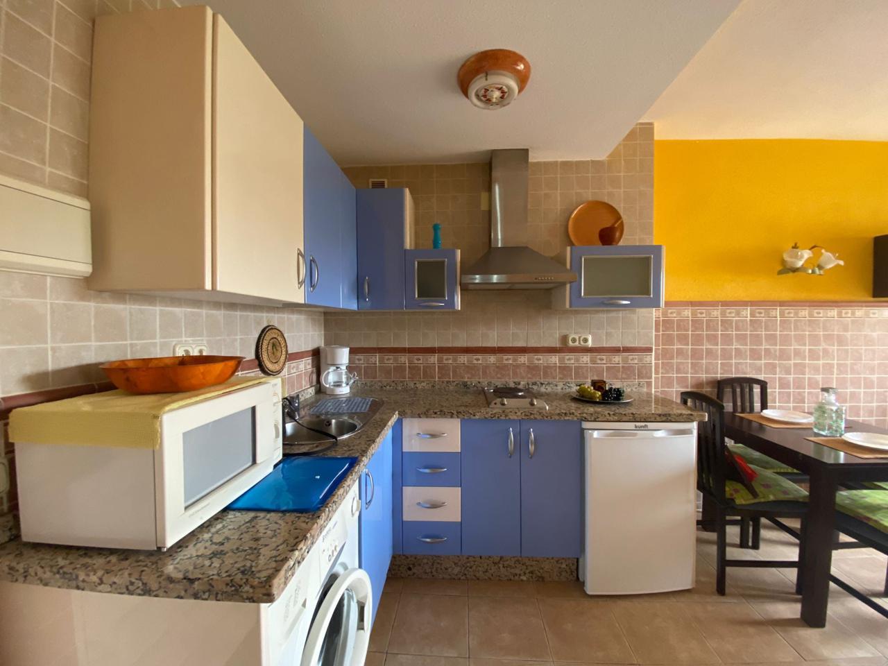 La propiedad se distribuye en una preciosa y adorable cocina estilo americano integrada al salón- comedor bastante luminoso.