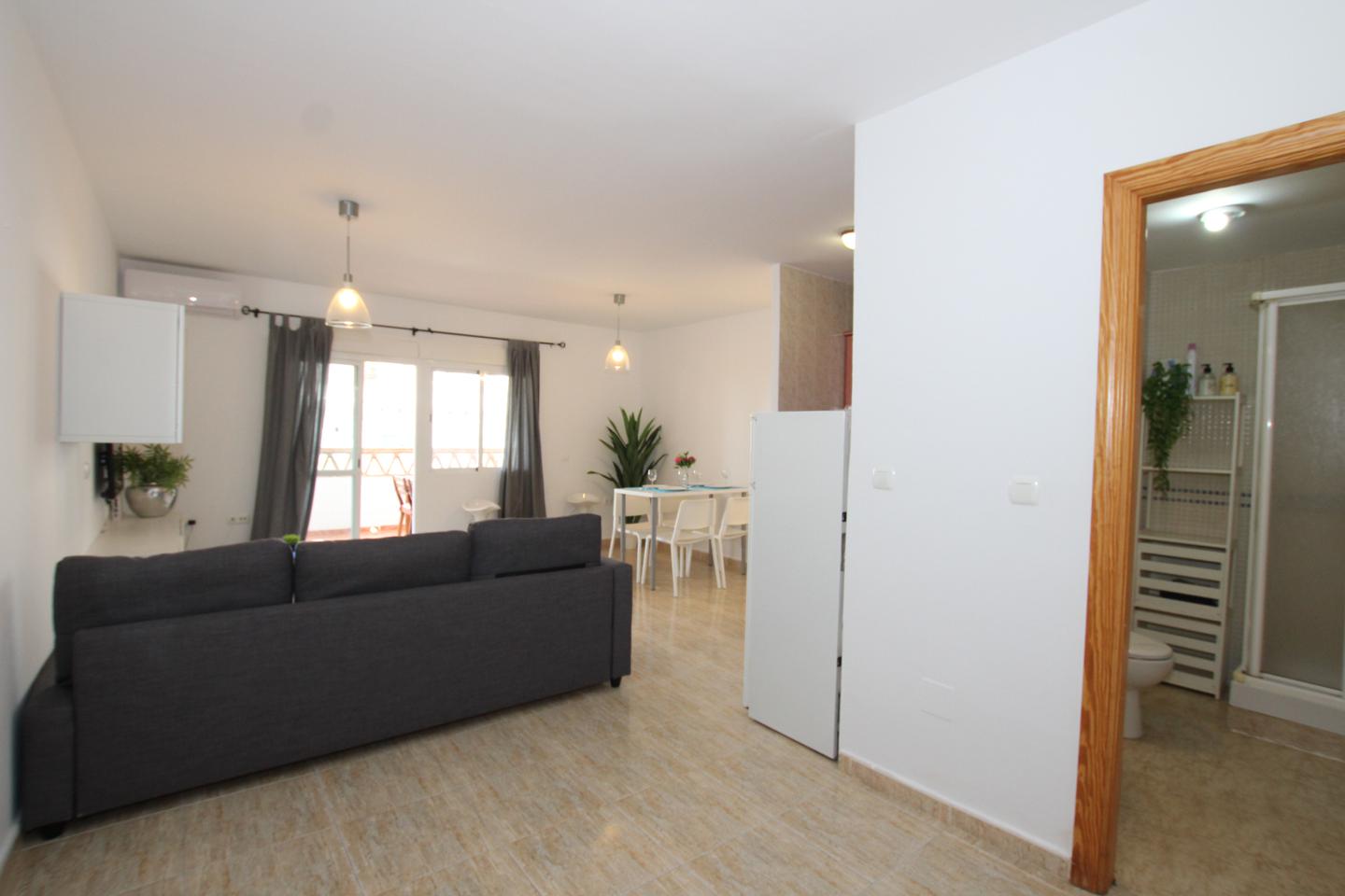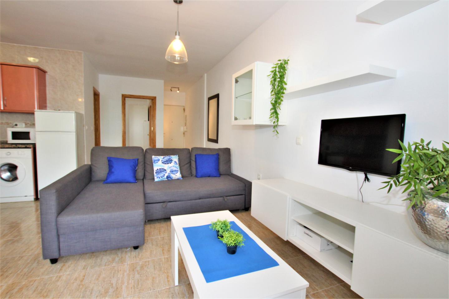 Piso situado en Avenida de las Palmeras, a solo 150 metrso de la playa, consta de 1 dormitorio, 1 baño, salon comedor, cocina americana, terraza con vistas al mar, orientacion oeste, muy luminoso,, al lado de todos los servicios tales como supermercado mercadona, parada bus, taxi, tiendas....