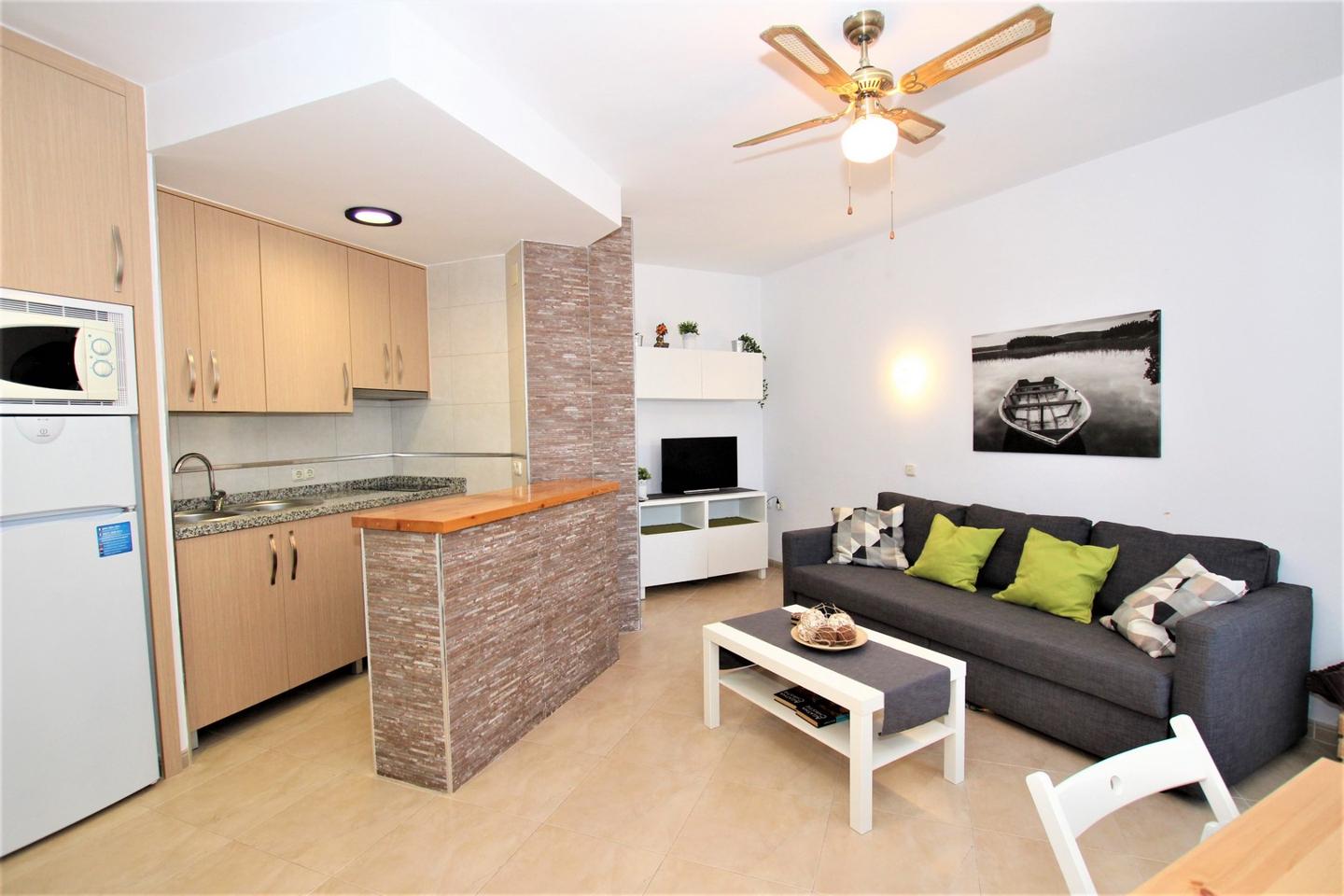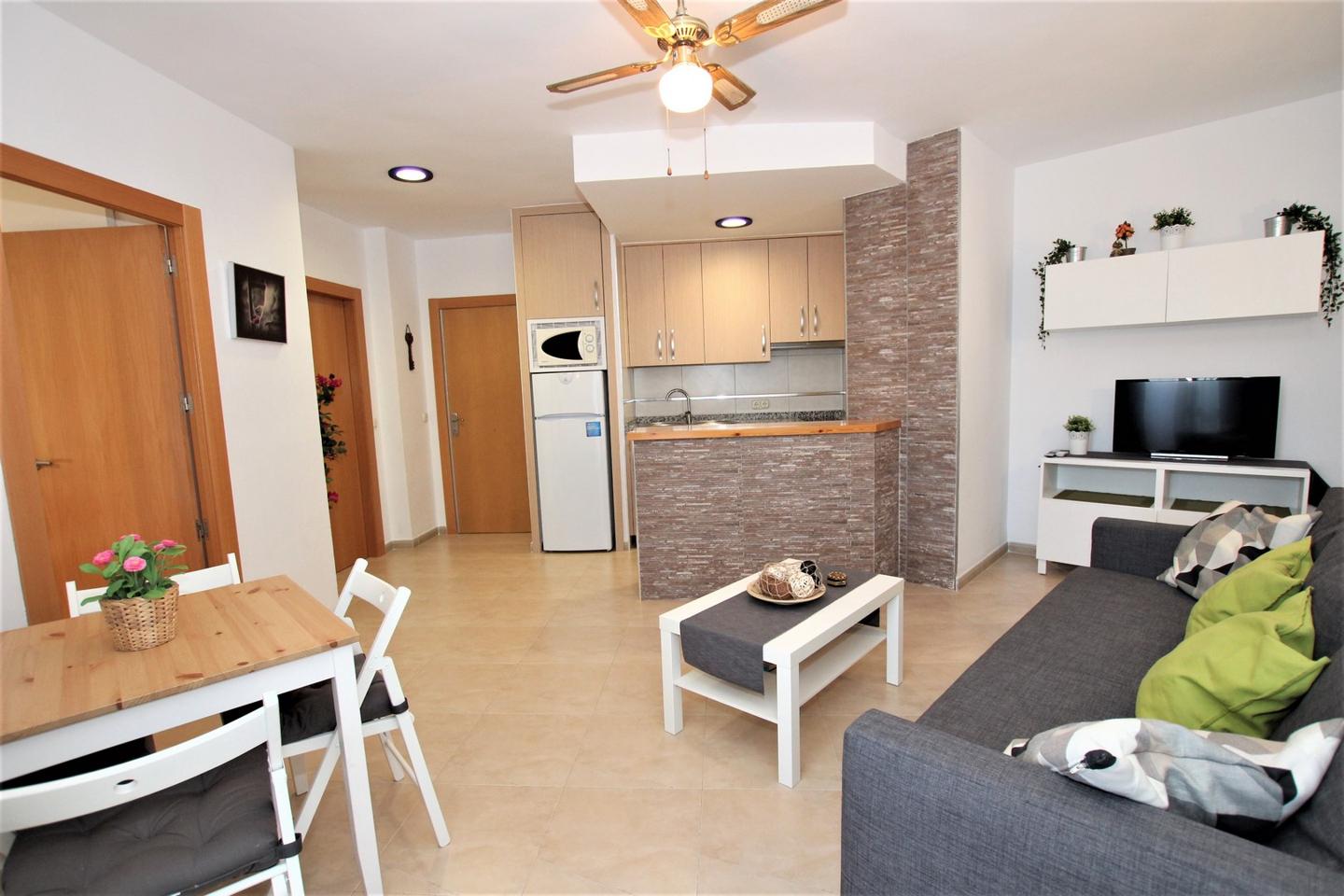 2ª LINEA PLAYA 1 Dormitorio !! Amplio Apartamento totalmente reformado!! 1 dormitorio , 45 m2, con cocina americana, salon comedor, 1 baño, 2 terrazas con vistas al mar y montaña, orientacion suroeste, muy luminoso. En complejo residencial con magnificas piscinas, jardines y parking privado comunitario a tan solo 200 metros de la playa y al lado del parque de la paloma y de todos los servicios Ideal como inversion!!!