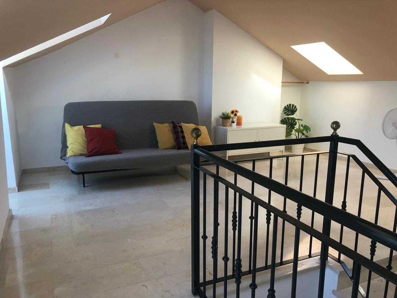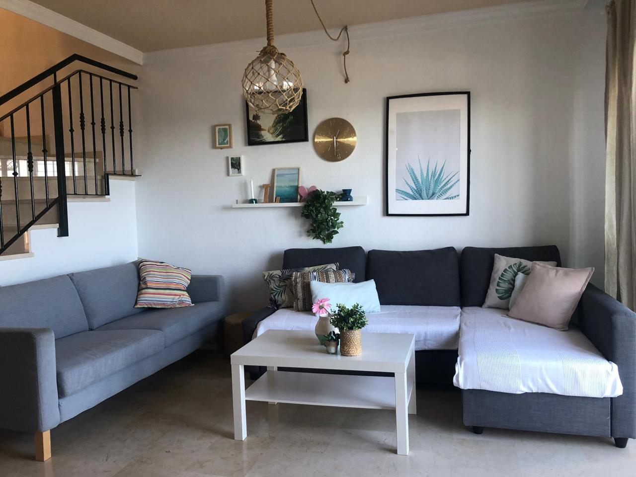 Este precioso adosado con increíbles vistas al mar, se encuentra en Calle Antares, 29631, Benalmádena, Málaga. Cuenta con 245 m2 de los cuales 215 m2 son útiles y dispone de 3 amplias habitaciones con armarios empotrados, una de ellas en suite y preciosas vistas al mar. Una buhardilla que puede ser utilizada como salón de juegos, habitación de invitados, o como mejor le parezca al cliente. Salón/ comedor con preciosa terraza con vistas al mar. Dos baños completos y un aseo. Cocina completamente equipada y con mesa pantry para desayunar. Amplio garaje que puede ser utilizado para dos coches y gran espacio para trastero. La vivienda posee licencia vacacional ya que también resulta una gran inversión como inmueble para alquiler vacacional. Se encuentra a tan solo unos 25 metros del mar. Muy cerca de todos los servicios y del colegio Británico.