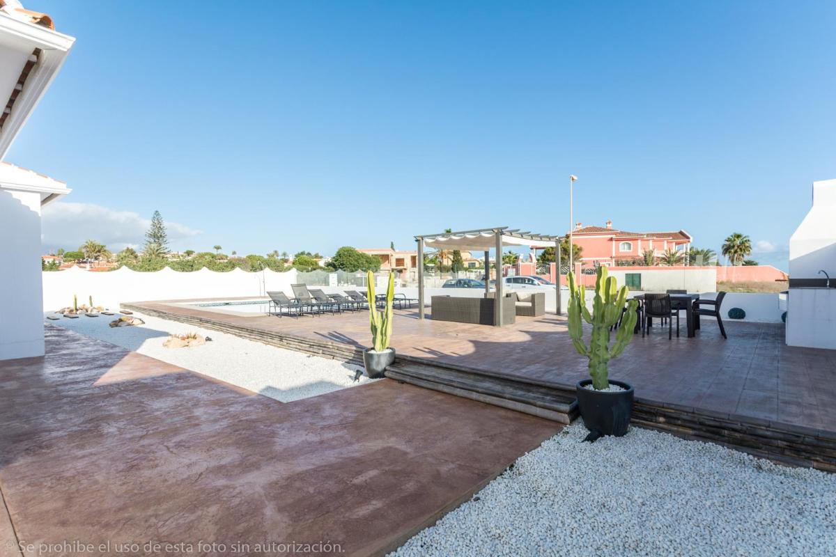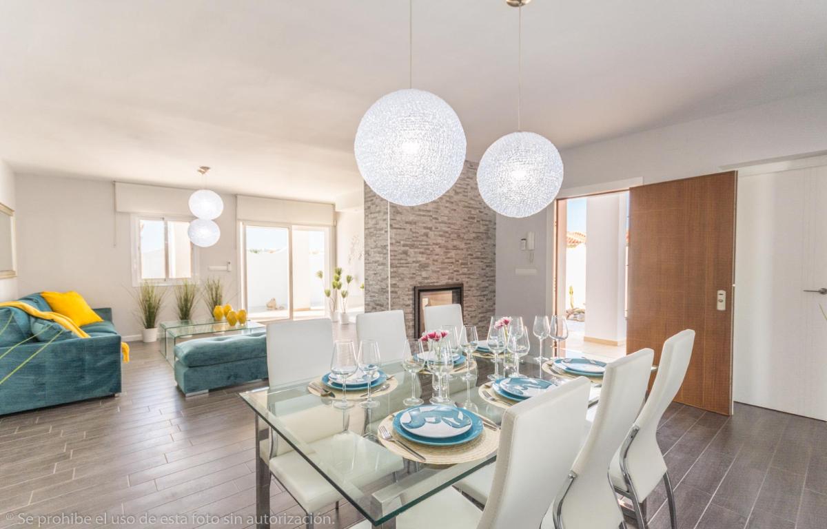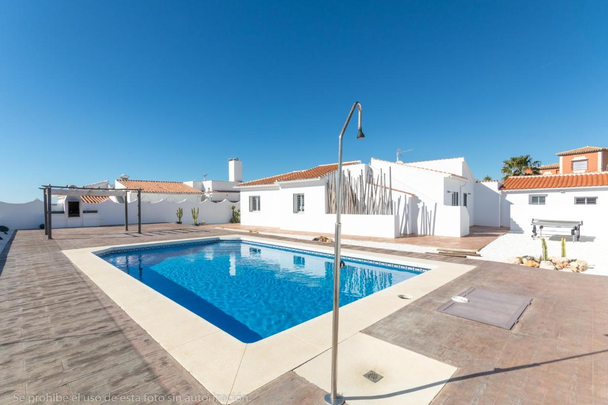 Construida en una sola planta en una parcela de 800 M2, consta de: amplio salón comedor, cocina amueblada y equipada, 3 dormitorios con baño en suite cada uno, 2 aseos, trastero, lavadero, aire acondicionado, ventiladores de techo, chimenea barbacoa exterior y garaje para 2 coches con puerta automática.
