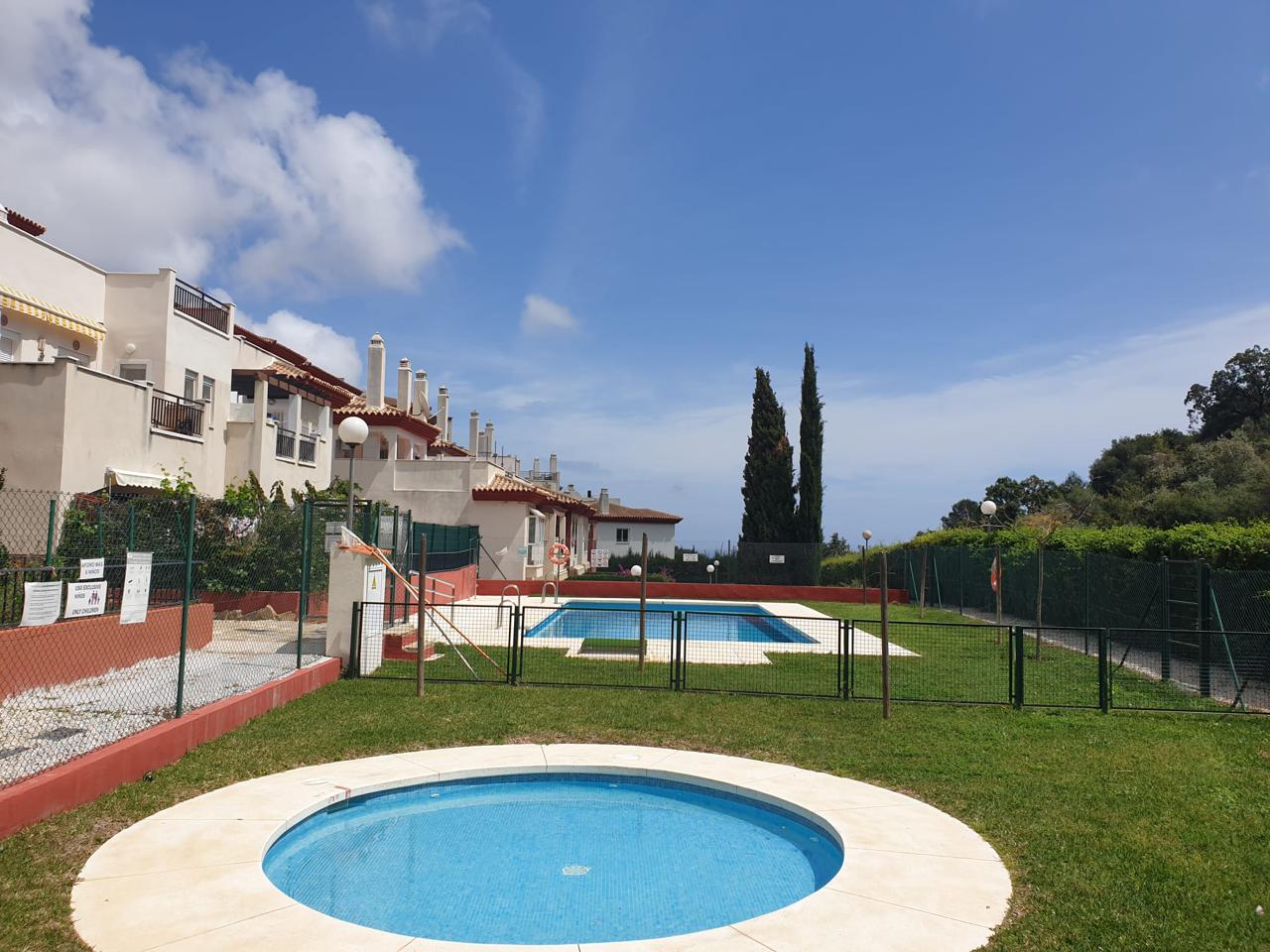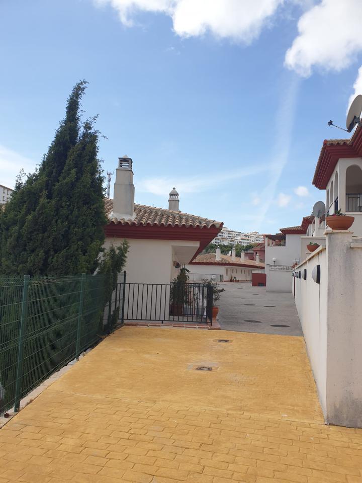 Venta de acogedor piso (bajo exterior) con gran terraza, se trata de un piso de 2 dormitorios, 2 baños, uno con bañera y el más pequeño con plato de ducha, salón-comedor, cocina abierta tipo americana y amplia terraza, además de garaje y trastero. Zona muy tranquila, se vende completamente amueblada y equipada para entrar a vivir. La urbanización dispone de piscina, terrazas y jardines comunitarios. A menos de 5 minutos del centro del pueblo caminando, muy cerca del recinto ferial, de la Stupa, el mariposario y  campo de fútbol, a 5 min andando del pueblo de Benalmádena.