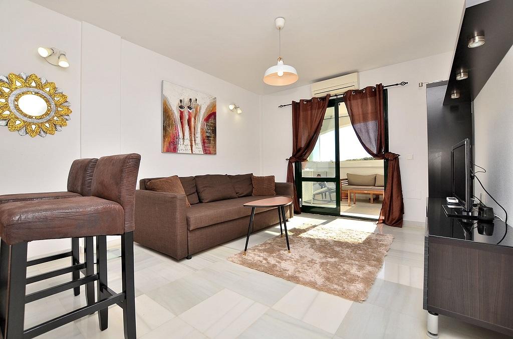 Apartamento en bonito complejo de estilo andaluz que cuenta con piscina comunitaria, amplios jardines, zona de barbacoa y pista de pádel. 60 m2.