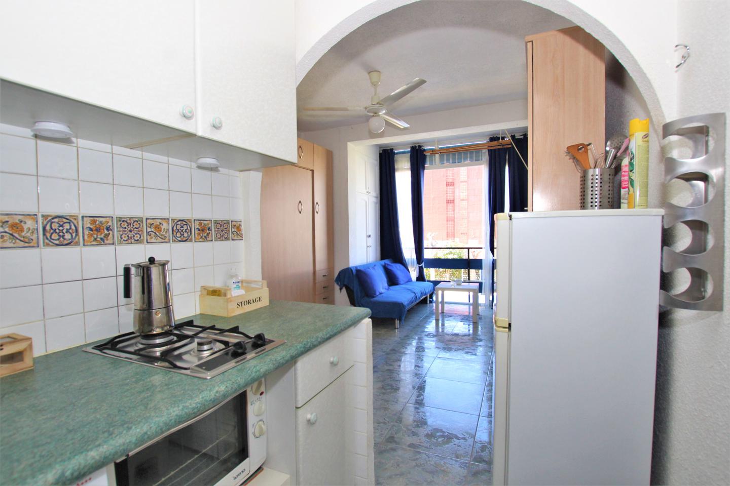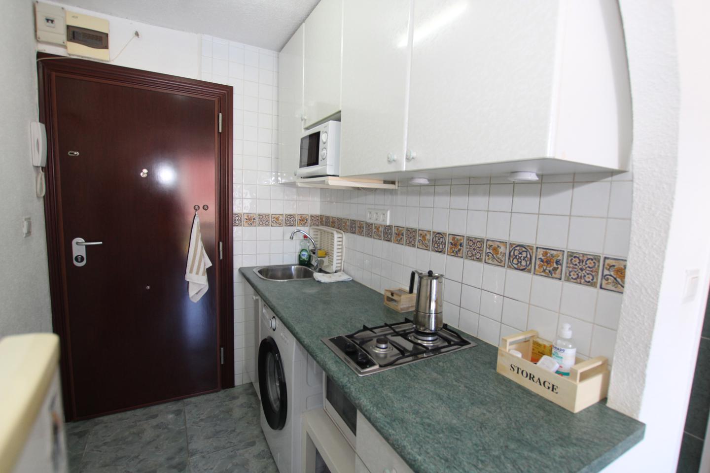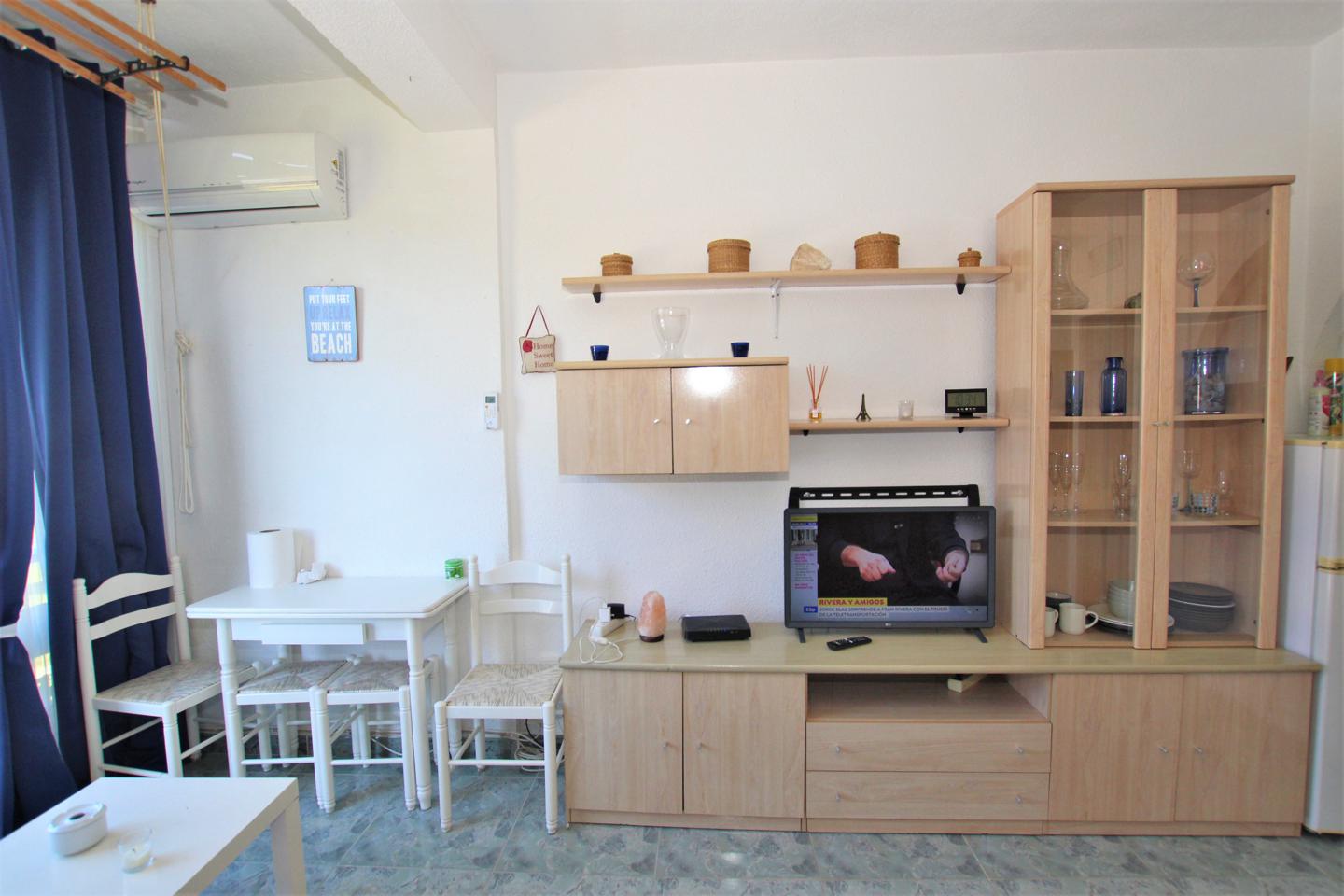 ESTUDIO LARGA TEMPORADA EN LOS ÁLAMOS. Situado en zona los Álamos, completamente amueblado y equipado, con cama de matrimonio y sofá cama. Cocina, baño y terraza incorporada al salón. Urbanización privada con jardines y piscina comunitarios. Se encuentra cerca de todos los servicios.