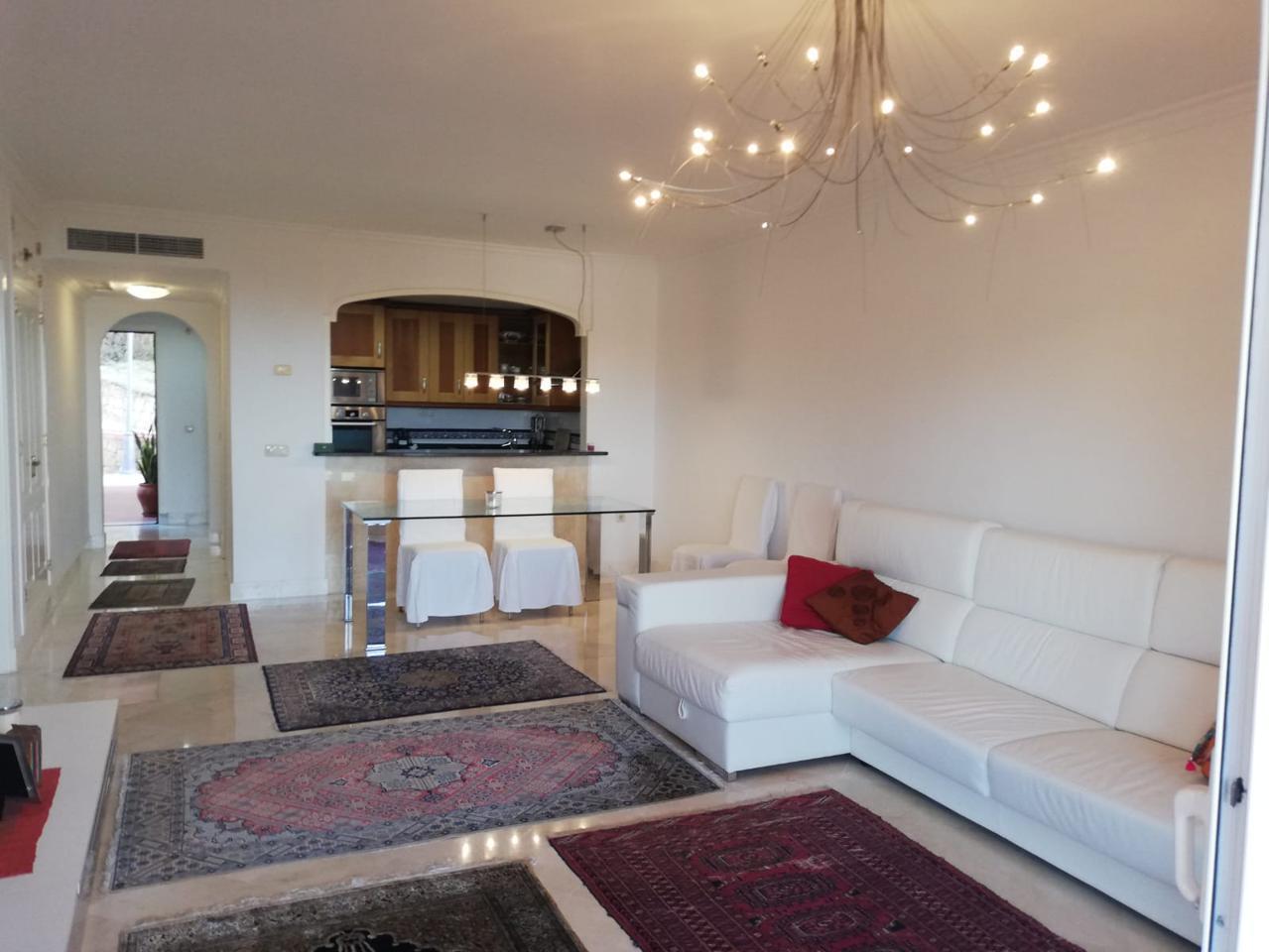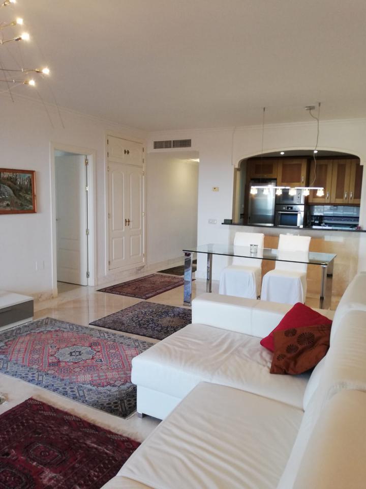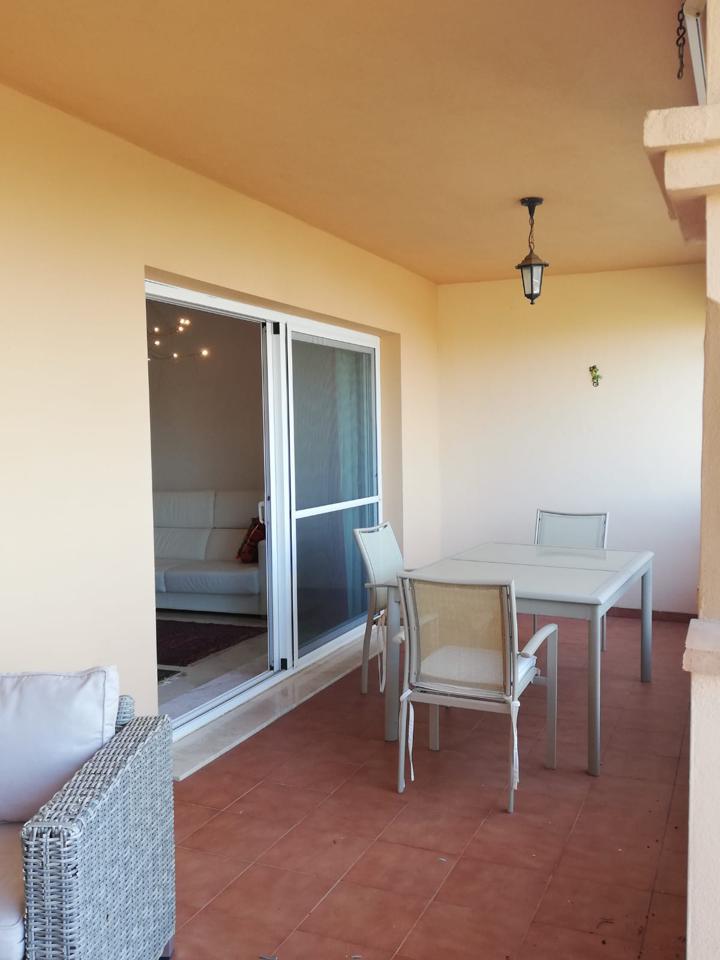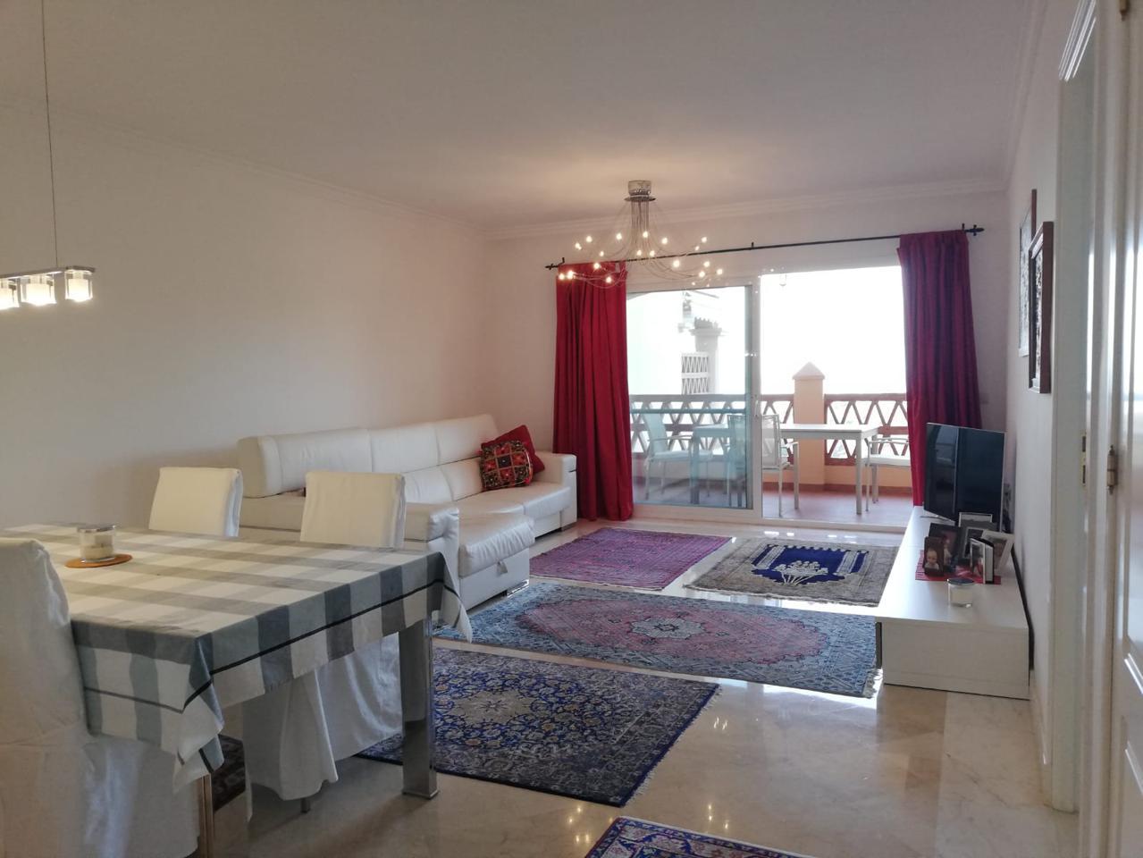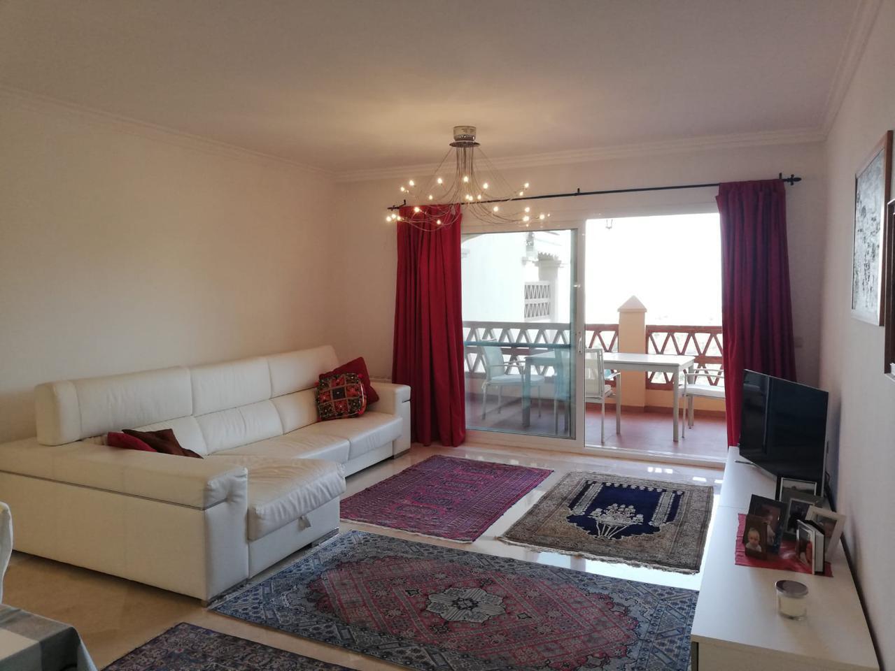 Situado en la urbanización "Mediterra". Le ofrecemos este piso con orientación sur, 2 dormitorios, 1 con vista al mar y acceso directo a la terraza, 2 baños, 1 en suite con bañera de hidromasaje y ducha, cocina semi abierta de calidad amueblada y equipada, muchos armarios empotrados, terraza de unos 20m2 con hermosa vista al mar.