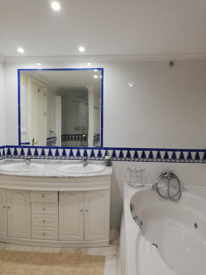 Suelos de mármol, doble acristalamiento, amplio salón con gran ventanal, A/A central, alarma, puerta blindada, paredes lisas.