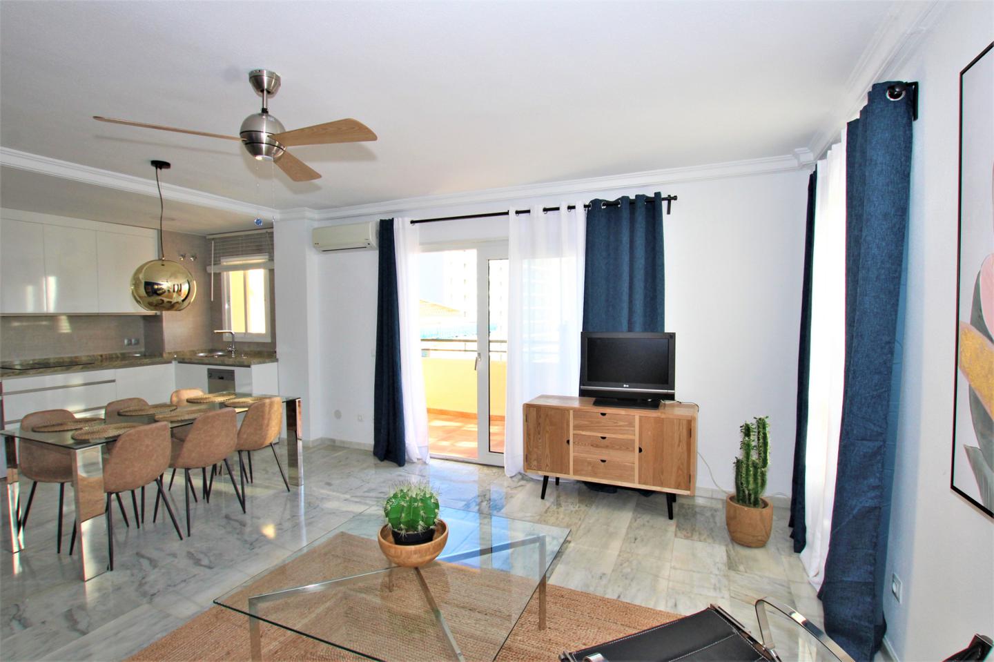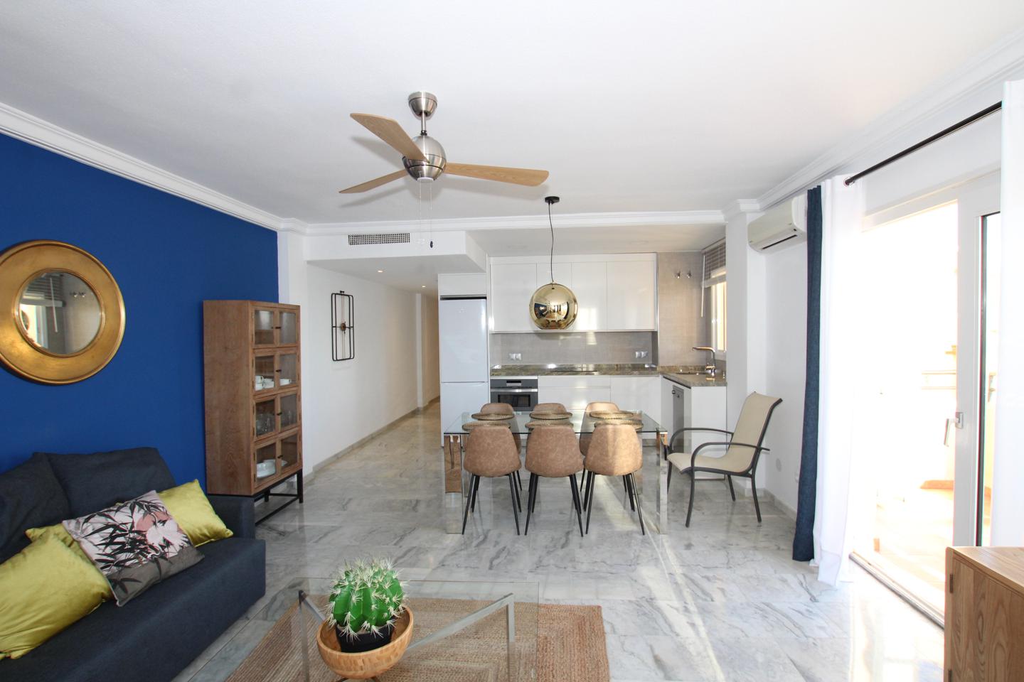 Piso muy soleado, con preciosa y luminosa con terraza con bonitas vistas al mar. Totalmente reformado suelos de marmol, aire acondicionado, cocina americana, salon comedor y 3 dormitorios y 2 baño.Con plaza de garaje en urbanizacion privada que cuenta con piscina, jardines comunitarios zona infatil y merendero, parking privado comunitario.