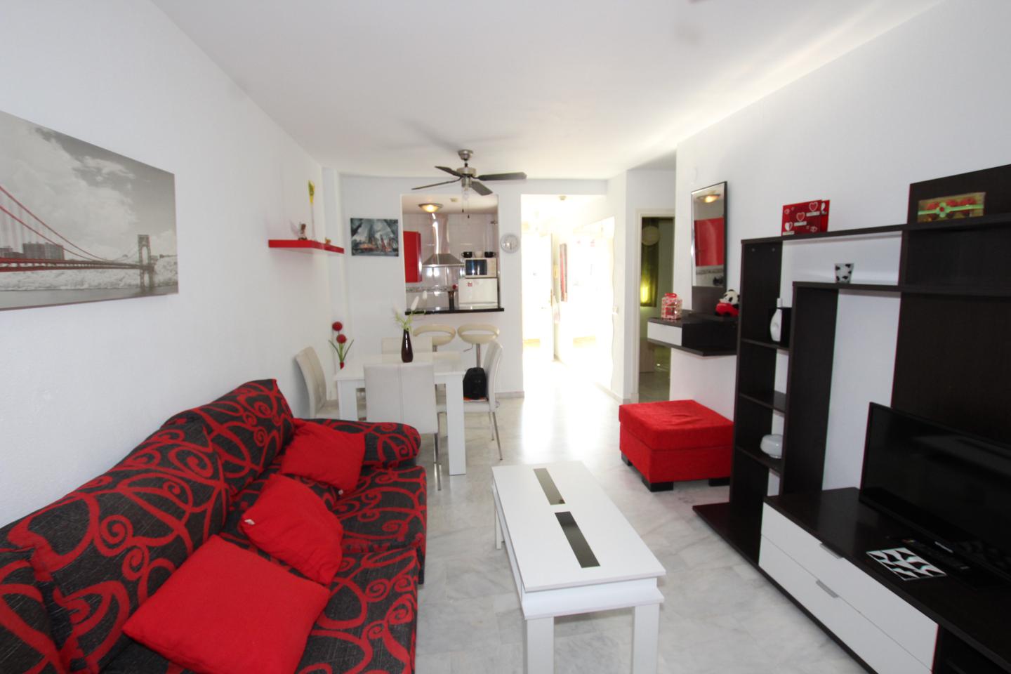 LARGA TEMPORADA 2 DORMITORIOS en Torrequebrada! Apartamento de 2 dormitorios, 1 baño, 1 aseo, salon comedor, cocina americana equipada, terraza con orientacion oeste, muy luminoso,amueblado, urbanizacion en recinto privado con piscinas y jardines comunitarios. Con todos los servicios cercanos tales como supermercados, bares, tiendas, parada de autobus, taxi, farmacia, centro de salud,
