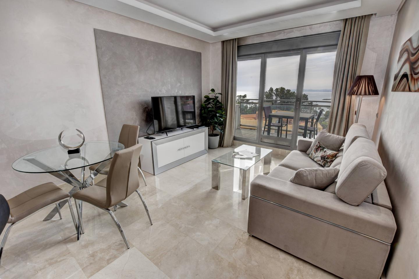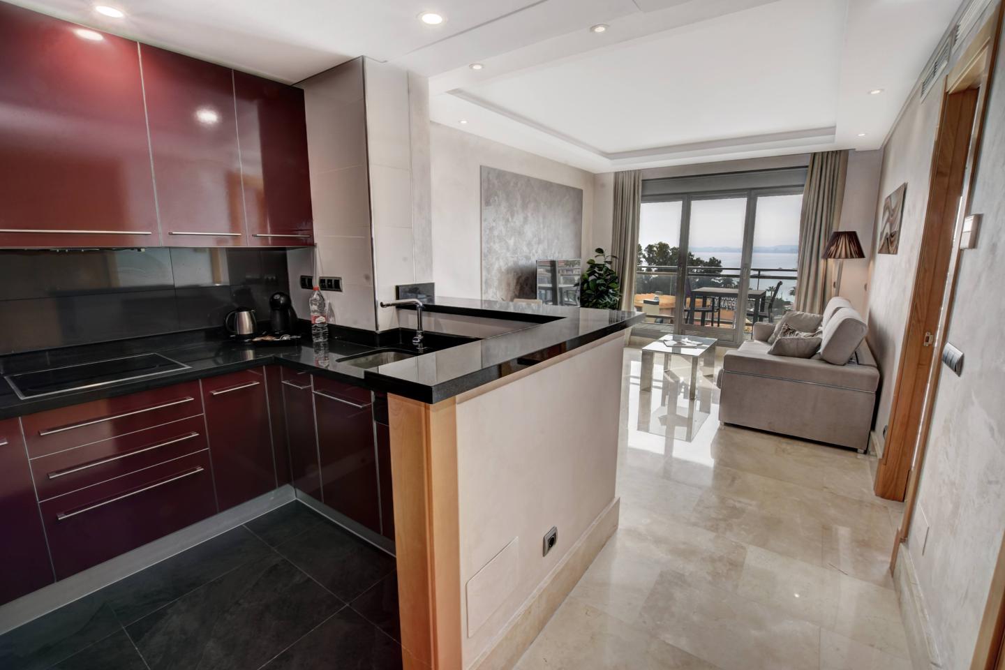 PRECIOSAS VISTAS AL MAR!!! Apartamento moderno y bien equipado de un dormitorio con cocina abierta y espectaculares vistas al mar y a la playa. ¡El mar y la playa se pueden ver desde la cocina, el salón y desde la cama! Esta propiedad también tiene una excelente ubicación con la playa, tiendas y restaurantes a muy poco distancia. Estas características junto con su ubicación, vistas y terraza soleada orientada al suroeste hacen que esta propiedad sea ideal como inversión para alquileres vacacionales de lujo o simplemente para uso residencial. Justo al lado de este apartamentos hay un centro comercial con varios restaurantes, bares (incluido Trocadero), un gran supermercado, quiosco de prensa y otras tiendas. La estación de tren más cercana que conecta con el aeropuerto y la ciudad de Málaga está a solo 5 minutos en taxi. ¡Se recomiendan visitas a esta propiedad!
