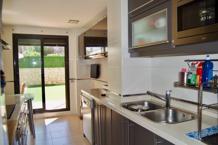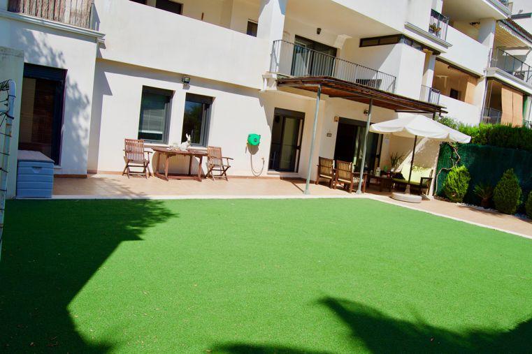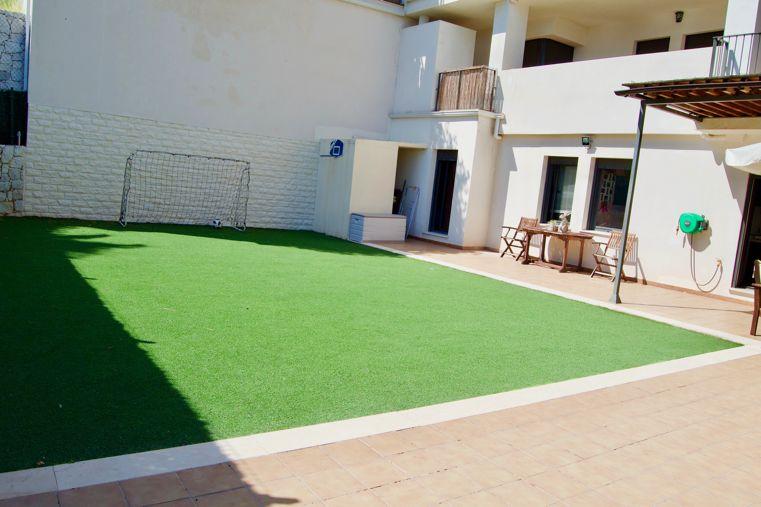 Se trata de un inmueble exterior con orientación oeste y orientación sur. Tiene garaje, cocina amueblada, ascensor, cocina equipada, aire acondicionado, trastero, jardín y calefacción central y incluye terraza, parking, porche, urbanizacion privada, trastero incluido, lavadero, pintura lisa, zona verde, jardín comunitario, vigilancia 24h, ventanas climalit, zona infantil, armarios empotrados, videoportero, vistas al golf, plaza garaje incluida, piscina comunitaria y puerta de seguridad.