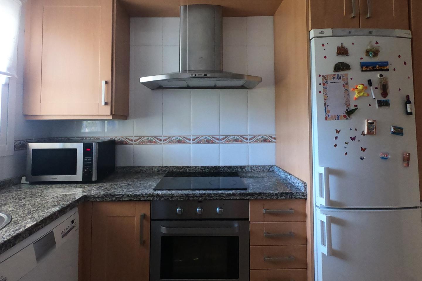 La cocina es perfecta, en tamaño, espacios ara almacenar y comodidad.