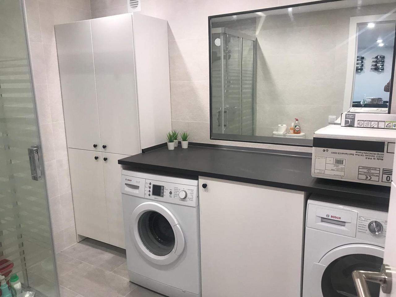 Lavadora, secadora (ambos Bosch) y suelo radiante en el baño.