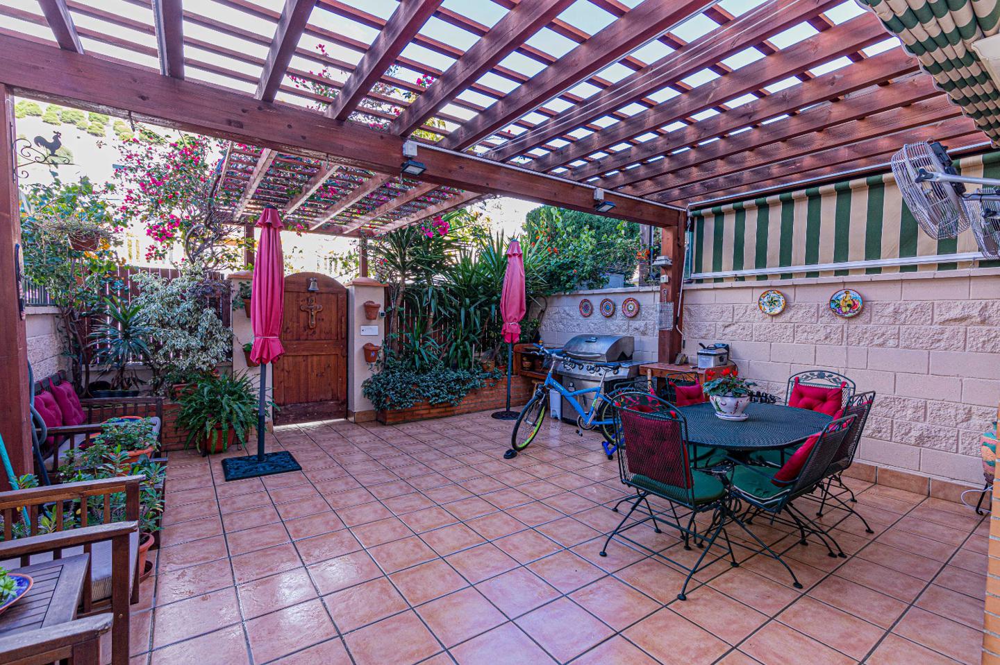 A LA VENTA: Este chalet adosado de 257m de superficie construida + 85m2 de patio y terraza, se distribuye en 5 dormitorios, 3 baños, 1 aseo, gran salón comedor, cocina independiente amueblada y equipada.