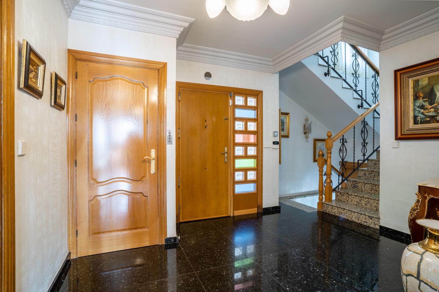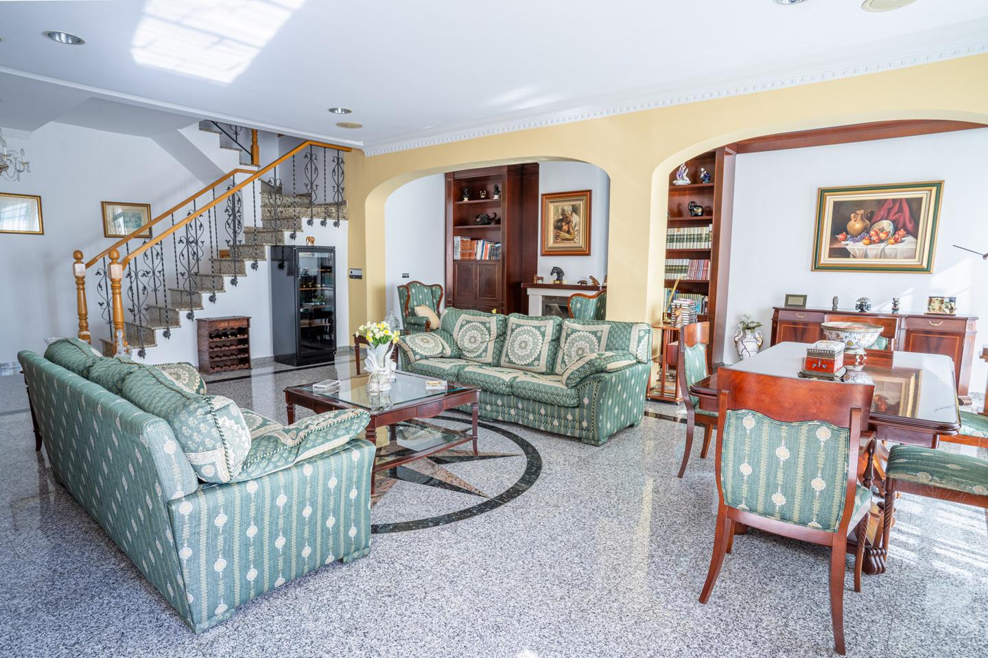 En planta baja están las estancias de día, cocina con lavadero y despensa. Sala y comedor, cuenta también con un aseo y un gran salón diáfano con chimenea y un ascensor.