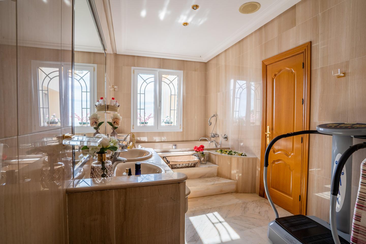 En la planta segunda está el dormitorio principal tiene dos vestidores, un gran salón y un baño principal con hidromasaje y jacuzzi, tiene una terraza con salida desde el dormitorio.