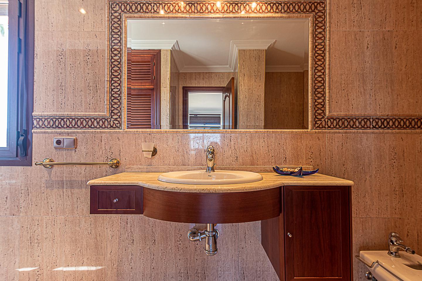 En su exterior; tenemos su preciosa piscina un caney para barbacoas para el disfrute del buen clima. En la planta superior se encuentra su majestuoso dormitorio principal con baño en suite, jacuzzi y otra terraza que invita a pasar veladas románticas contemplando los atardeceres, la luna y las estrellas. Un despacho comunicado con la primera planta y un dormitorio auxiliar. En su tercera planta inferior encontramos garaje para coches grandes, trastero y los exteriores de la vivienda con vegetación de distintas especies. Dispone de un imponente acceso y ambiente vinculado a la piscina y zonas de ocio.