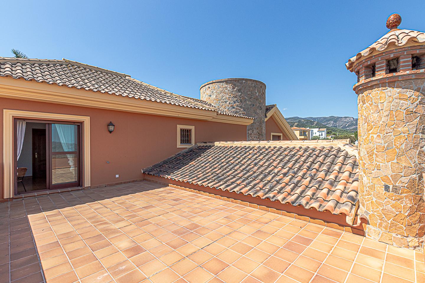 La villa está construida con acabados de la más alta calidad, distintos tipos de acabados porcelánicos y carpintería de madera de primera. Dispone de tres pozos de agua en la parcela que permite tener un suministro independiente a la red de abastecimiento.