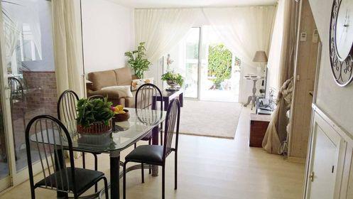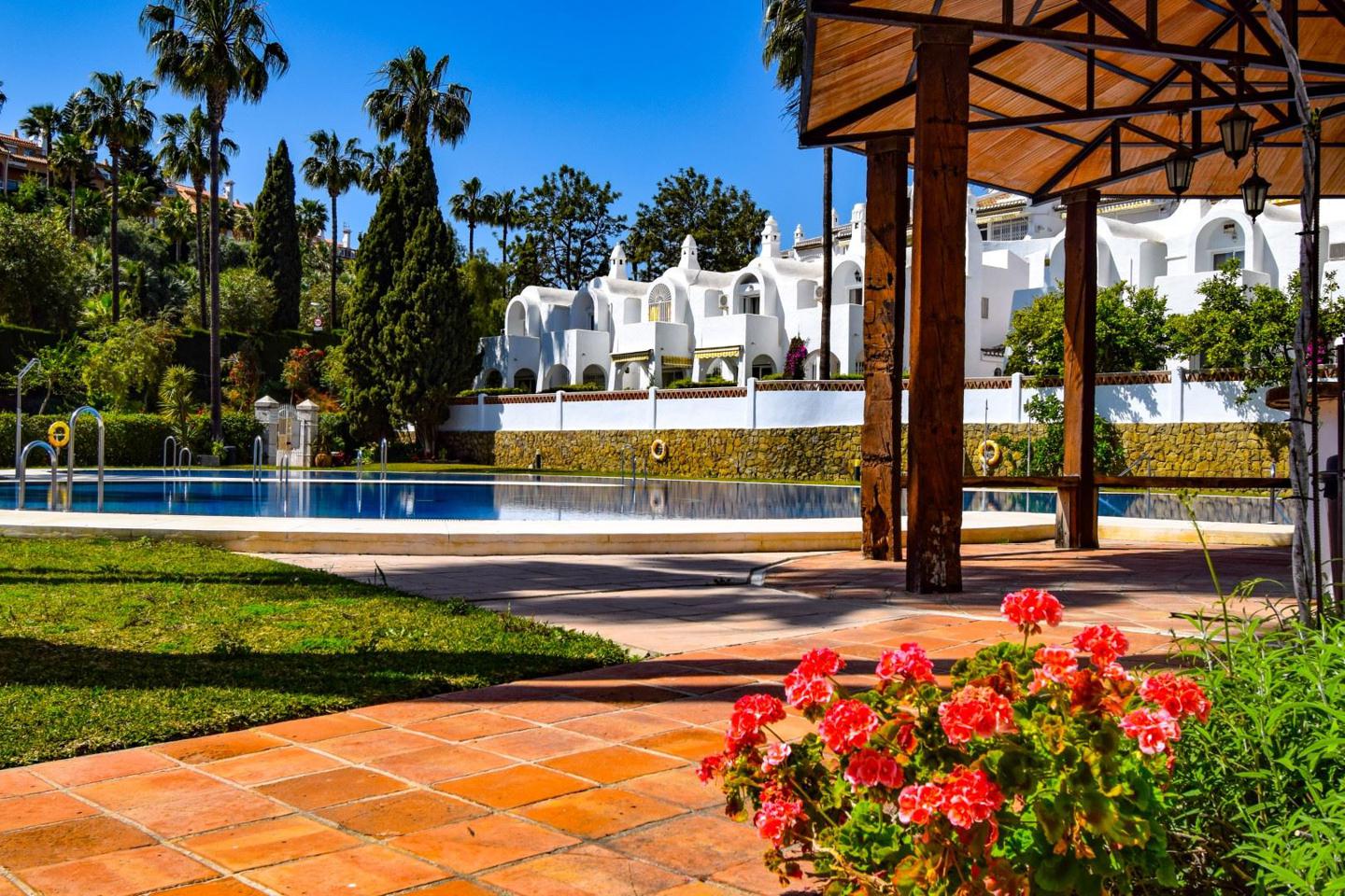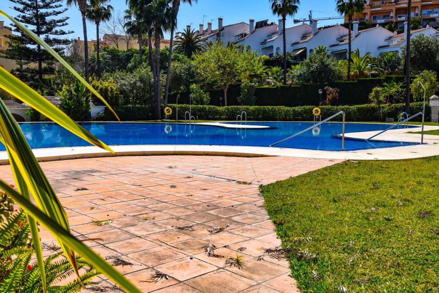 3 dormitorios, 2 baños, trastero (sotano). Hermosa terraza con mesa de comedor con parrilla incorporada, jardín y sauna. Piscina comunitaria