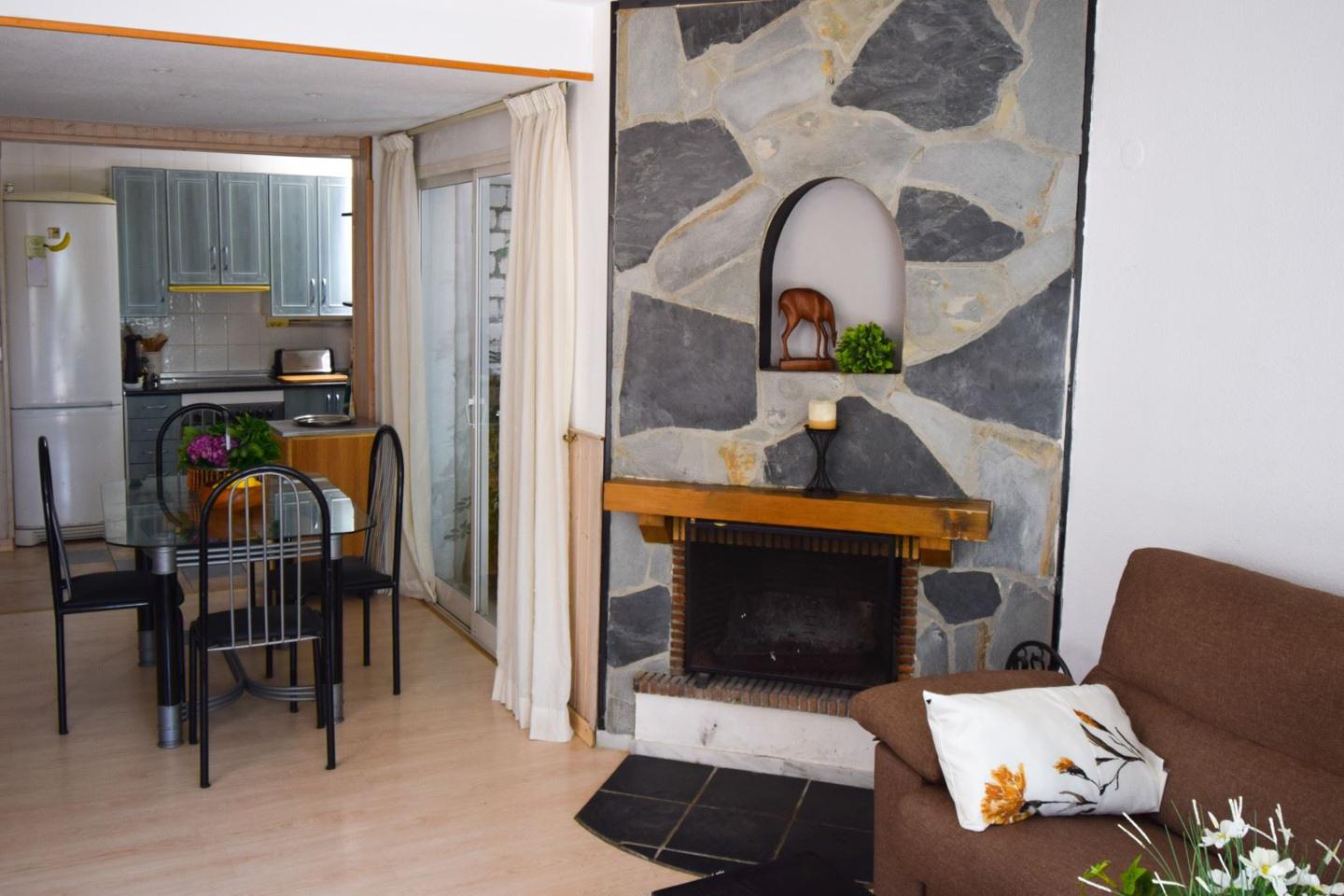 Dispone de cocina moderna totalmente equipada, agradable salón con chimenea,