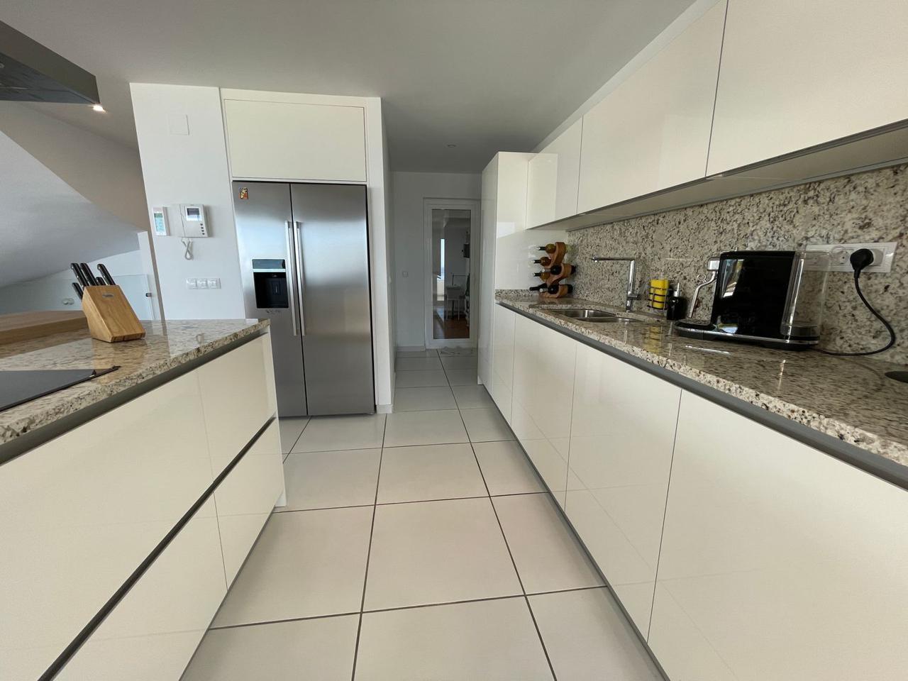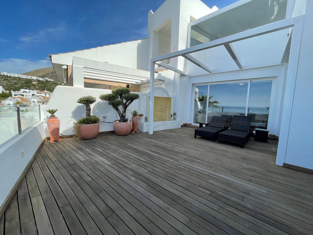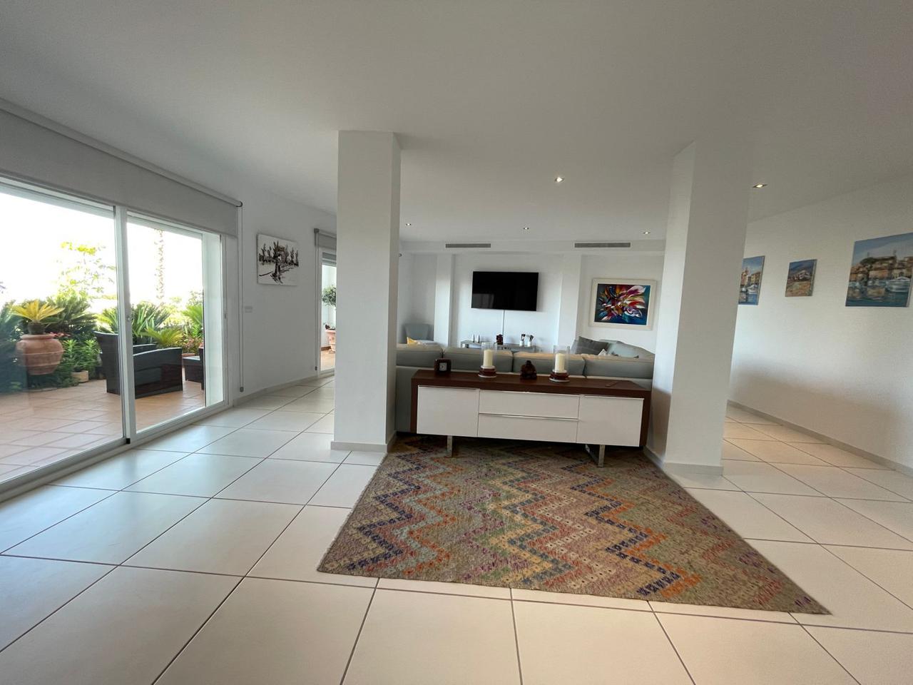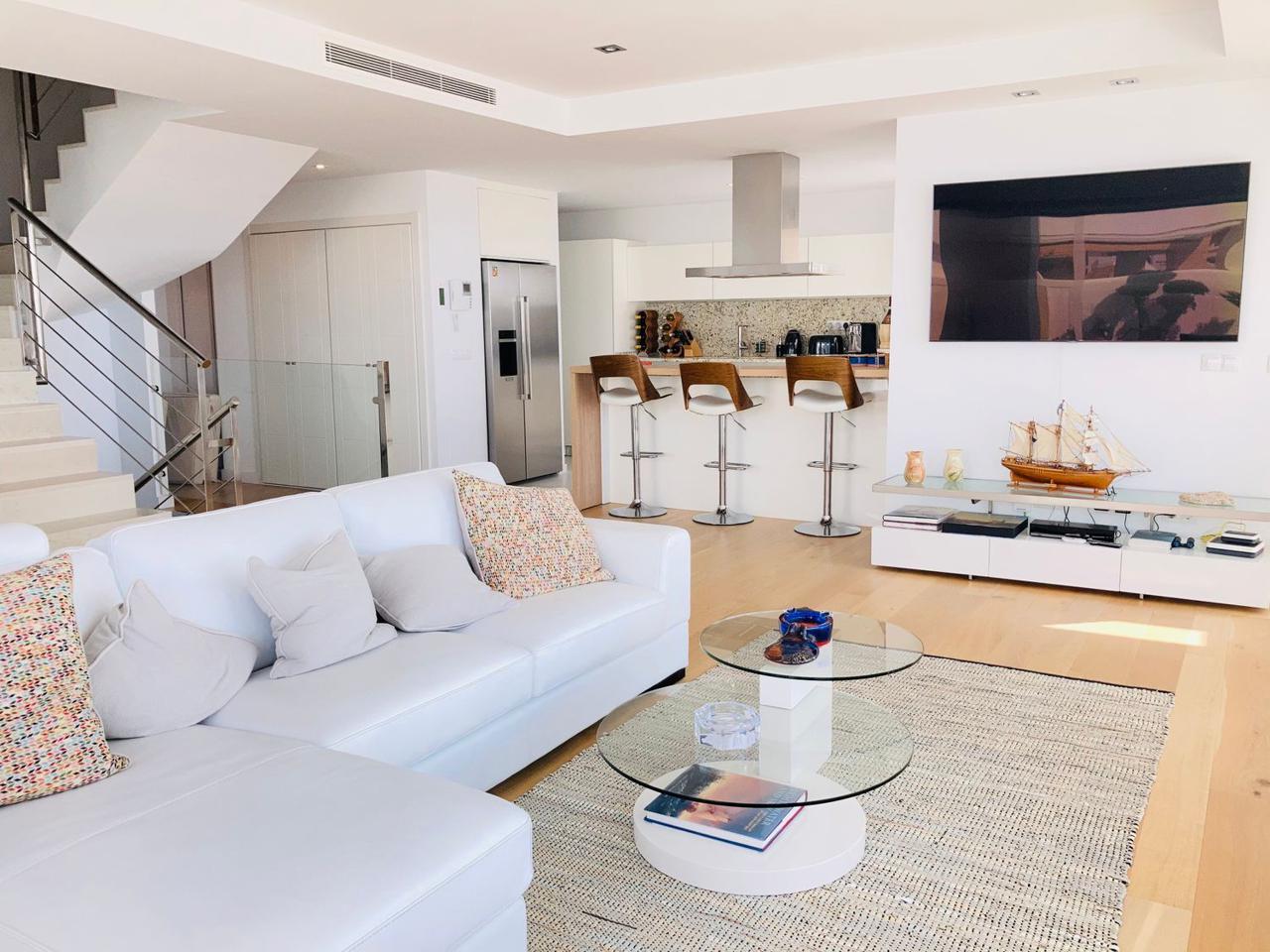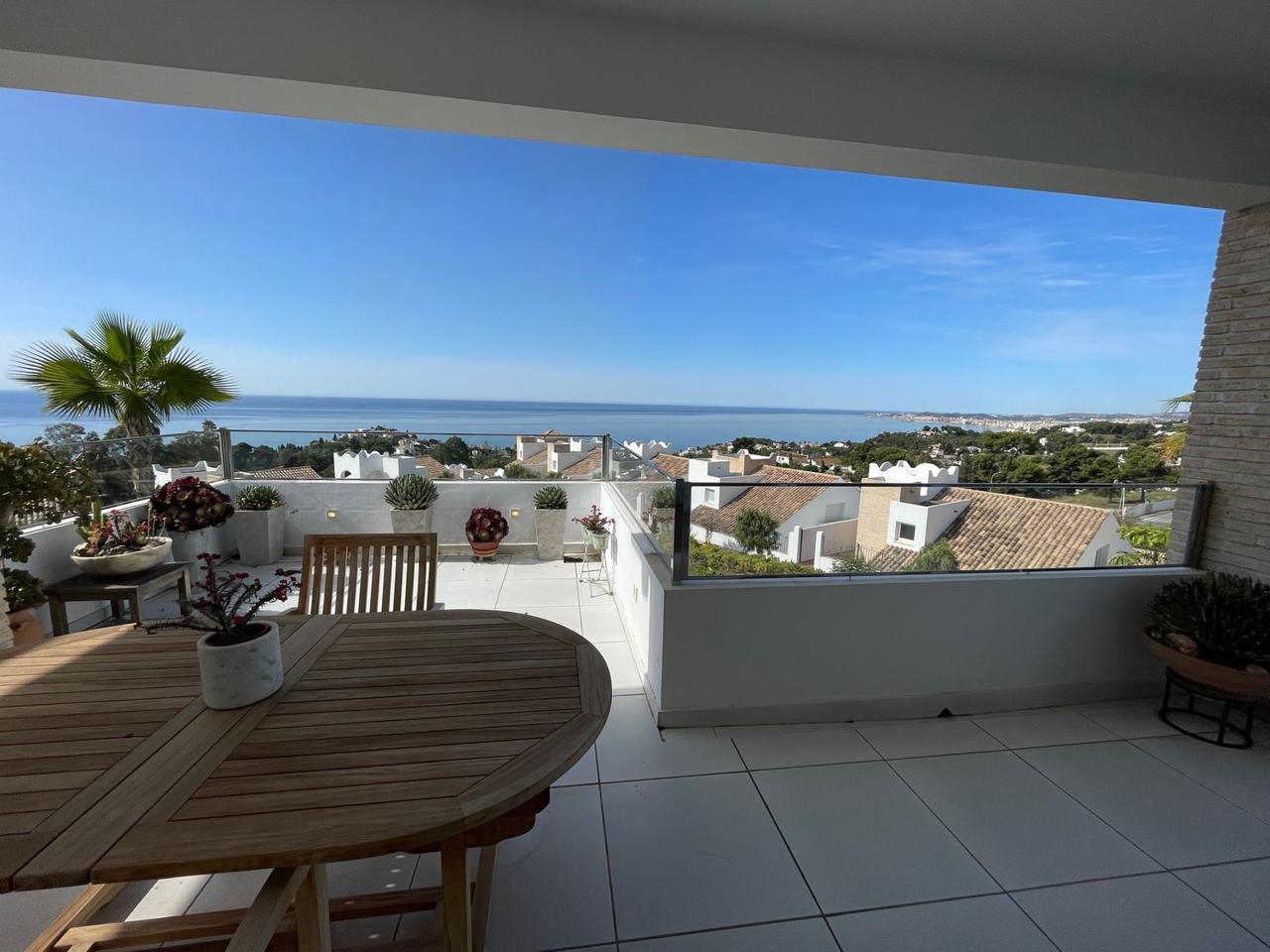 Consta de 4 dormitorios con 4 baños completos en suite y terraza privada cada uno de ellos, aseo, cocina abierta totalmente equipada a uno de los salones (ya que dispone de dos) jardín, trastero, garaje cerrado privado y también con vistas espectaculares al mar.