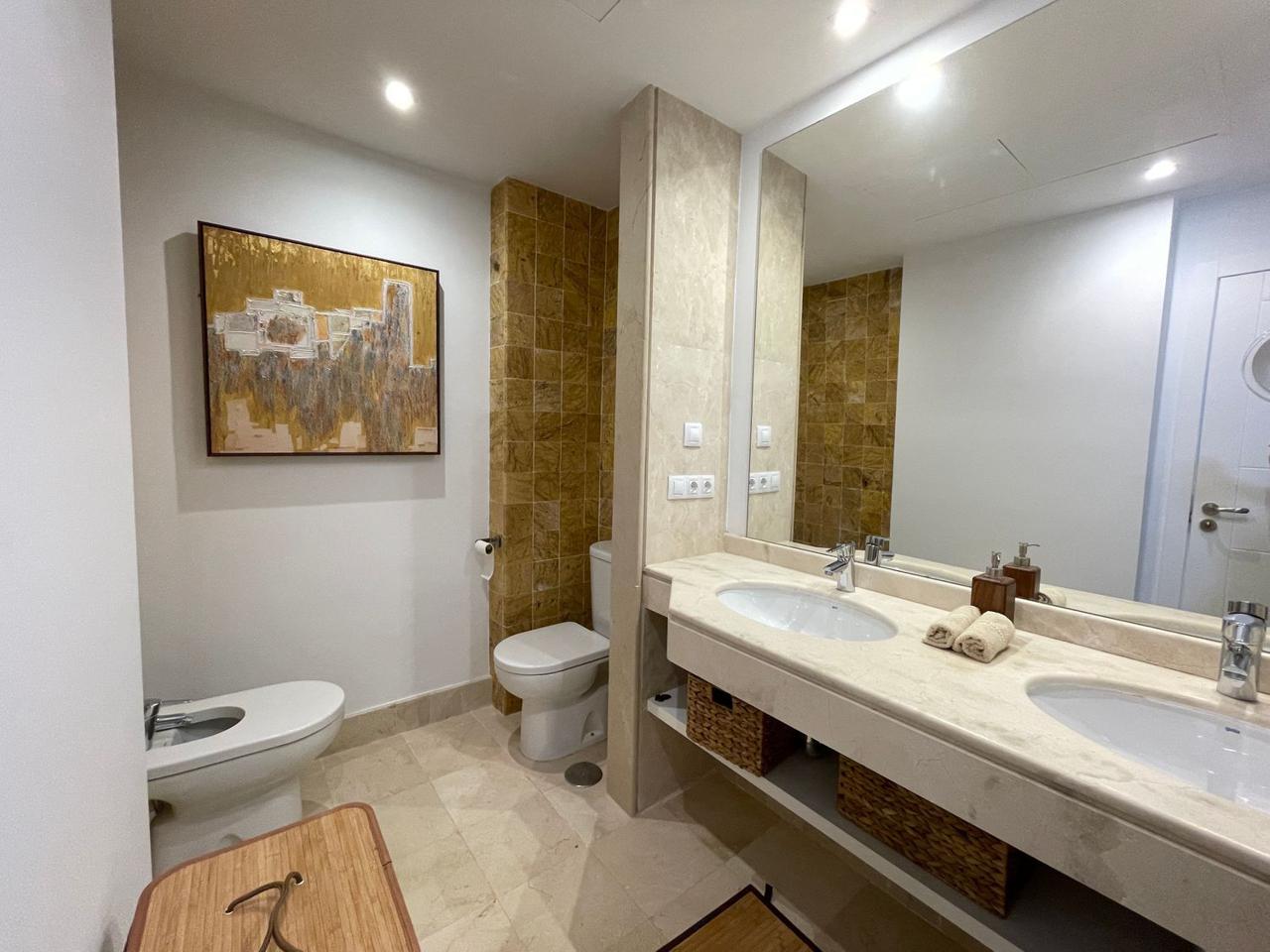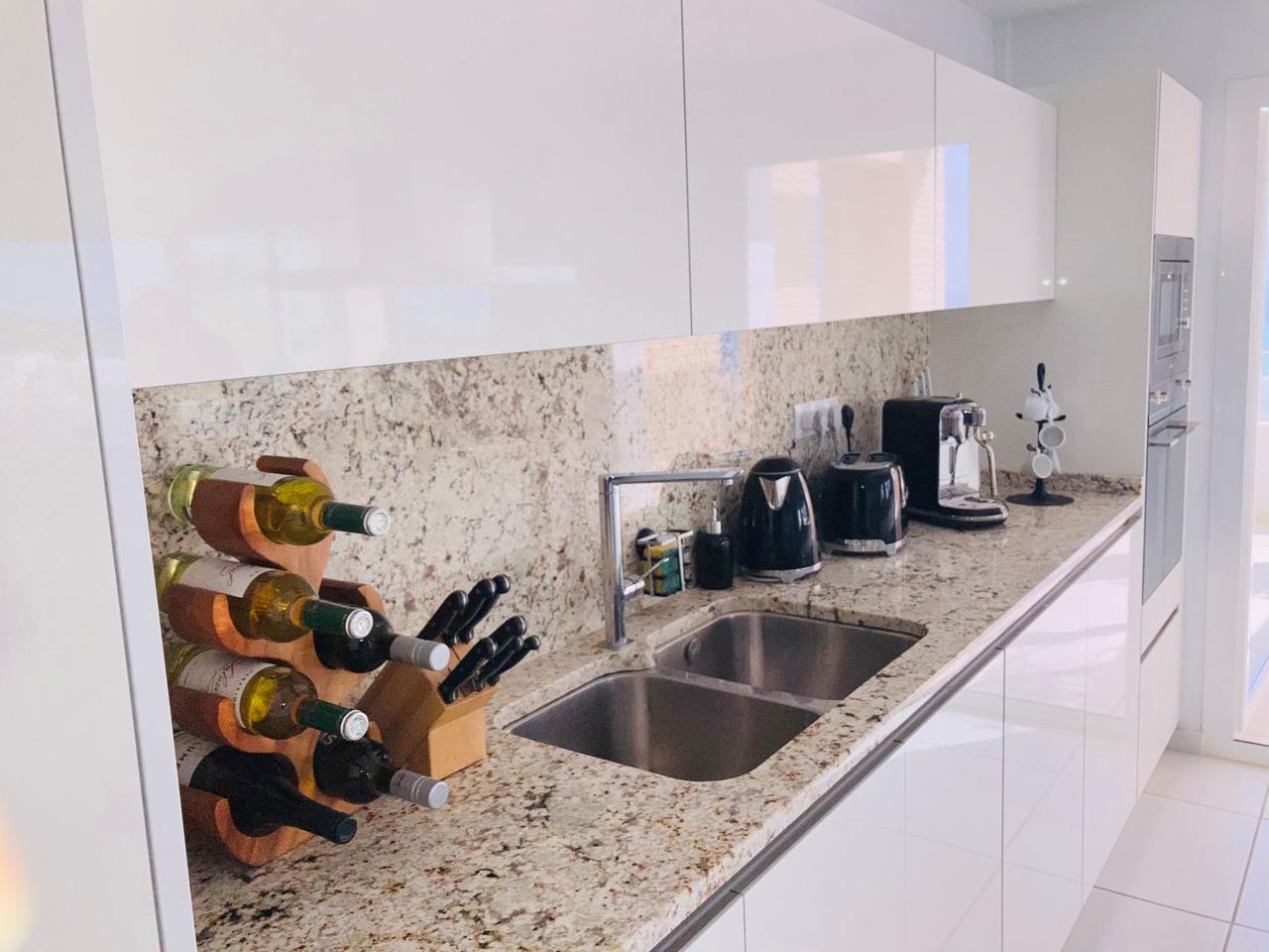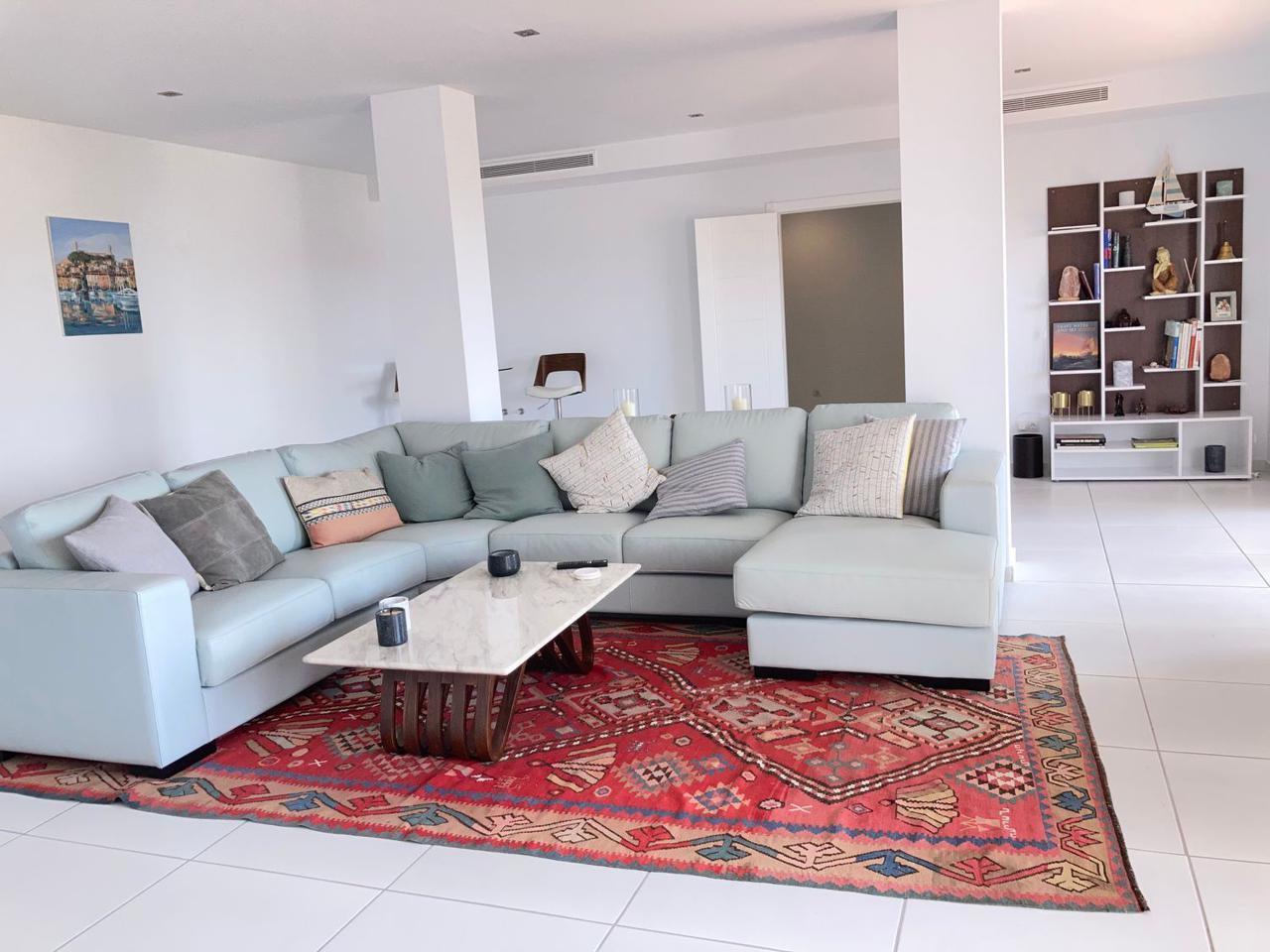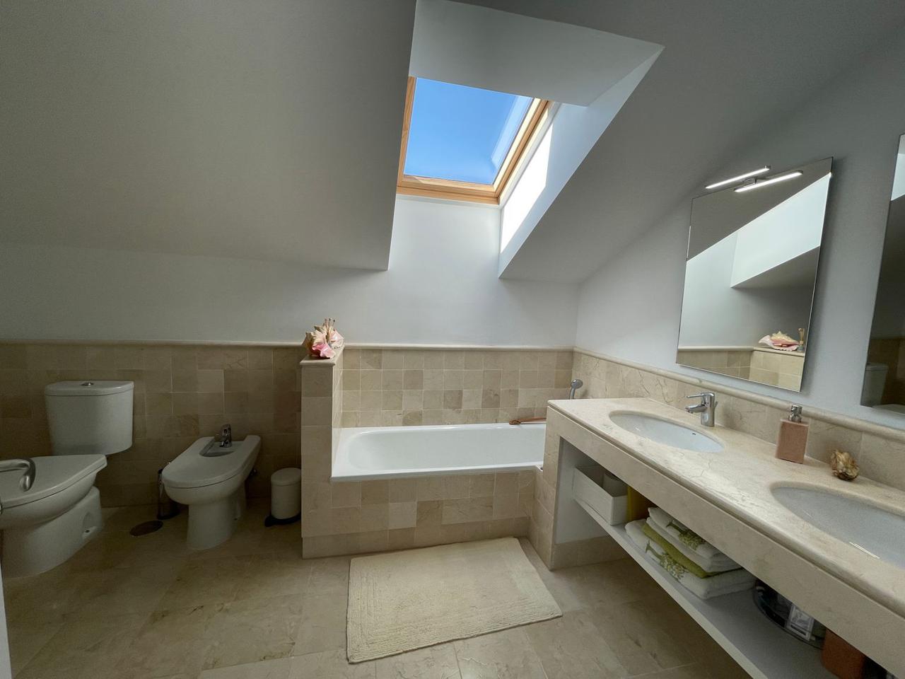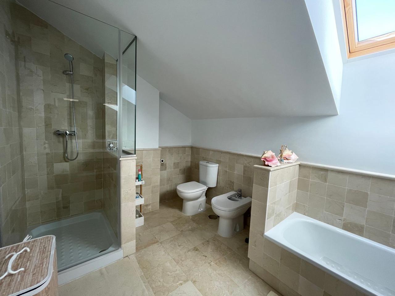 Consta de 4 dormitorios con 4 baños completos en suite y terraza privada cada uno de ellos, aseo, cocina abierta totalmente equipada a uno de los salones (ya que dispone de dos) jardín, trastero, garaje cerrado privado y también con vistas espectaculares al mar.