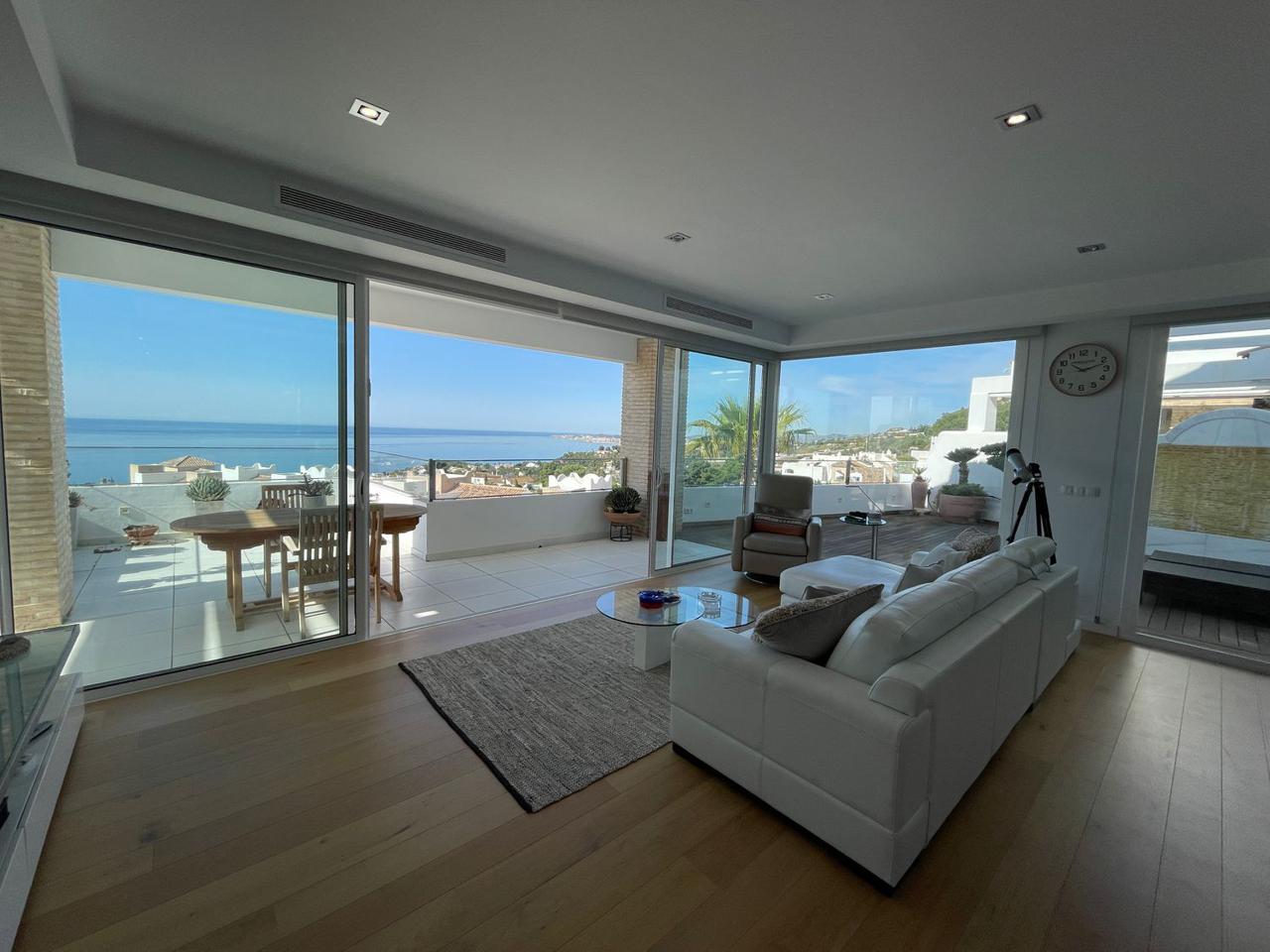 La villa es muy amplia, con vistas garantizadas panorámicas a un parque natural protegido, al mar y la bahía de Fuengirola, y desde todas las habitaciones de la casa. Las mejores vistas de la Costa del Sol a tu alcance.