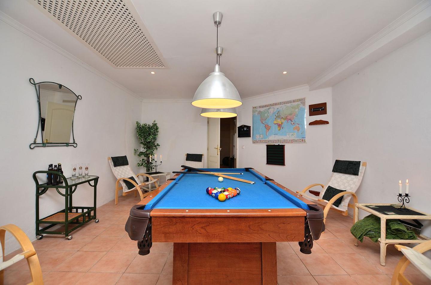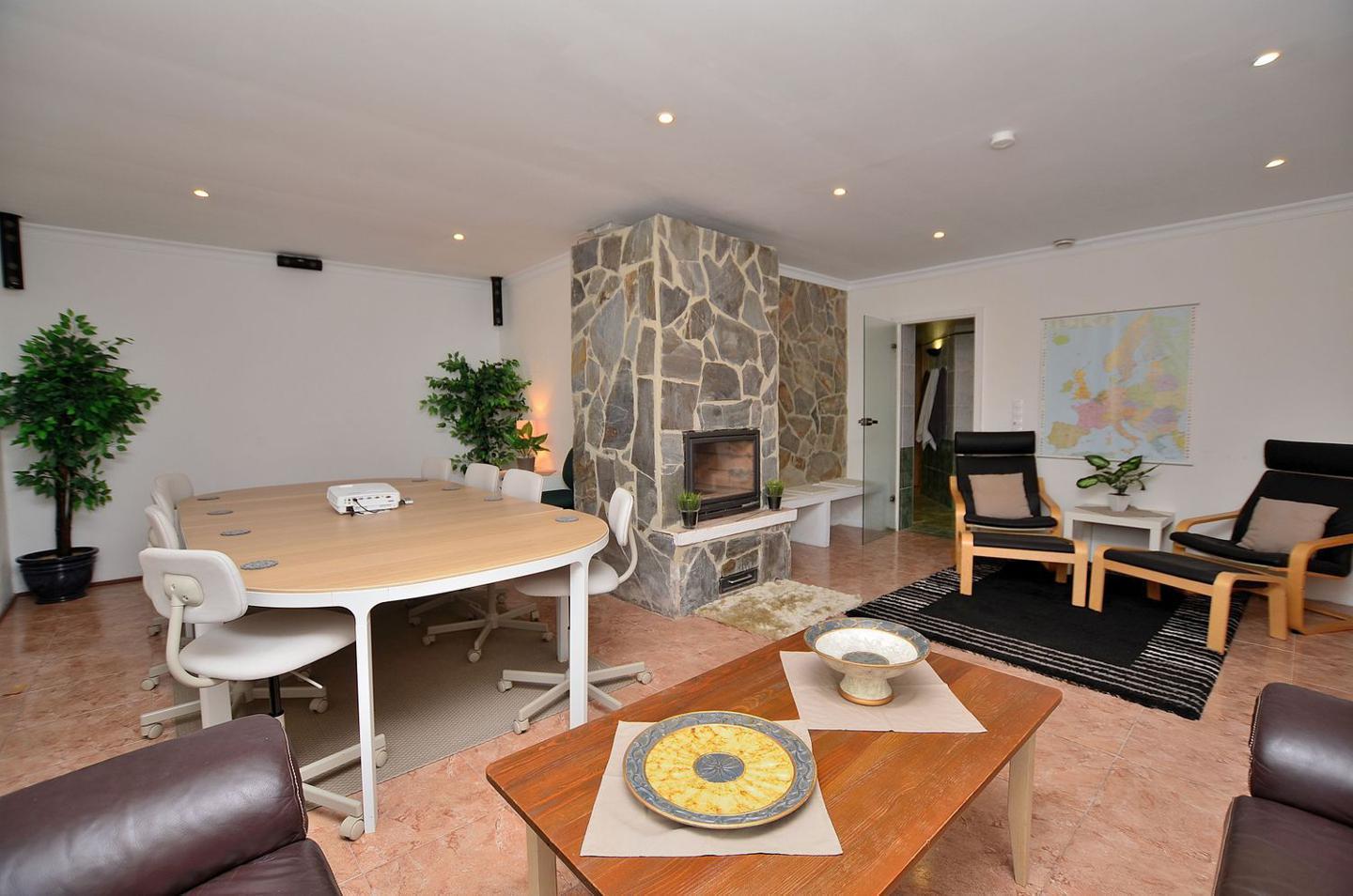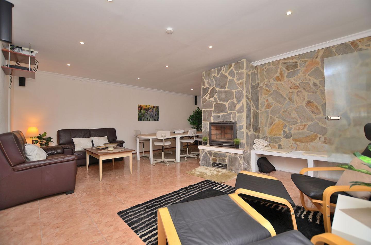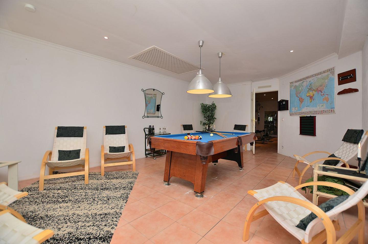 Sala de conferencias con capacidad de 14 personas, chimenea, zona de spa con amplia piscina cubierta, gran sauna finlandesa, baño turco, sala de juegos (billar), gimnasio, duchas, vestuarios, dos baños, bodega.