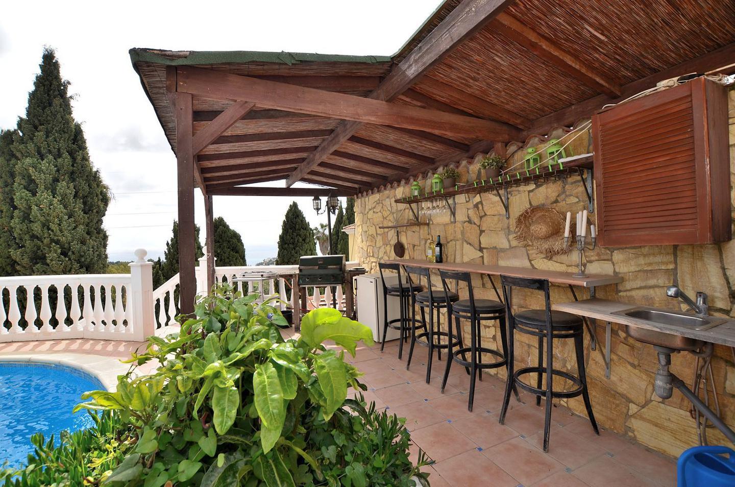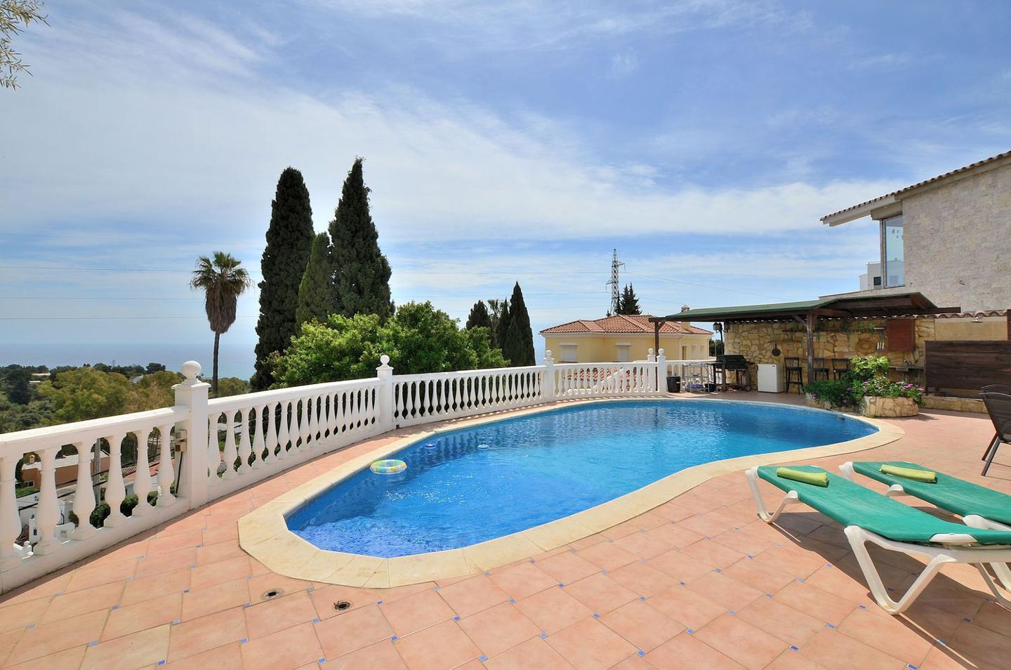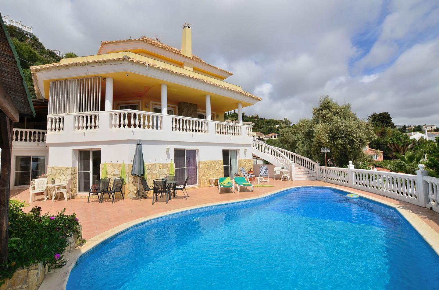 Villa Independiente situada a menos de 10 min. andando a Benalmádena Pueblo y cerca de colegios y playas, en zona residencial que conserva todo el encanto de la naturaleza y fabulosas vistas panoramicas al mar y la montaña desde cada habitación de la casa. Donde acceder a ella es facilisimo por la autovia (salida de Higueron o desde la carretera de la Costa) a 15 minutos del aeropuerto.